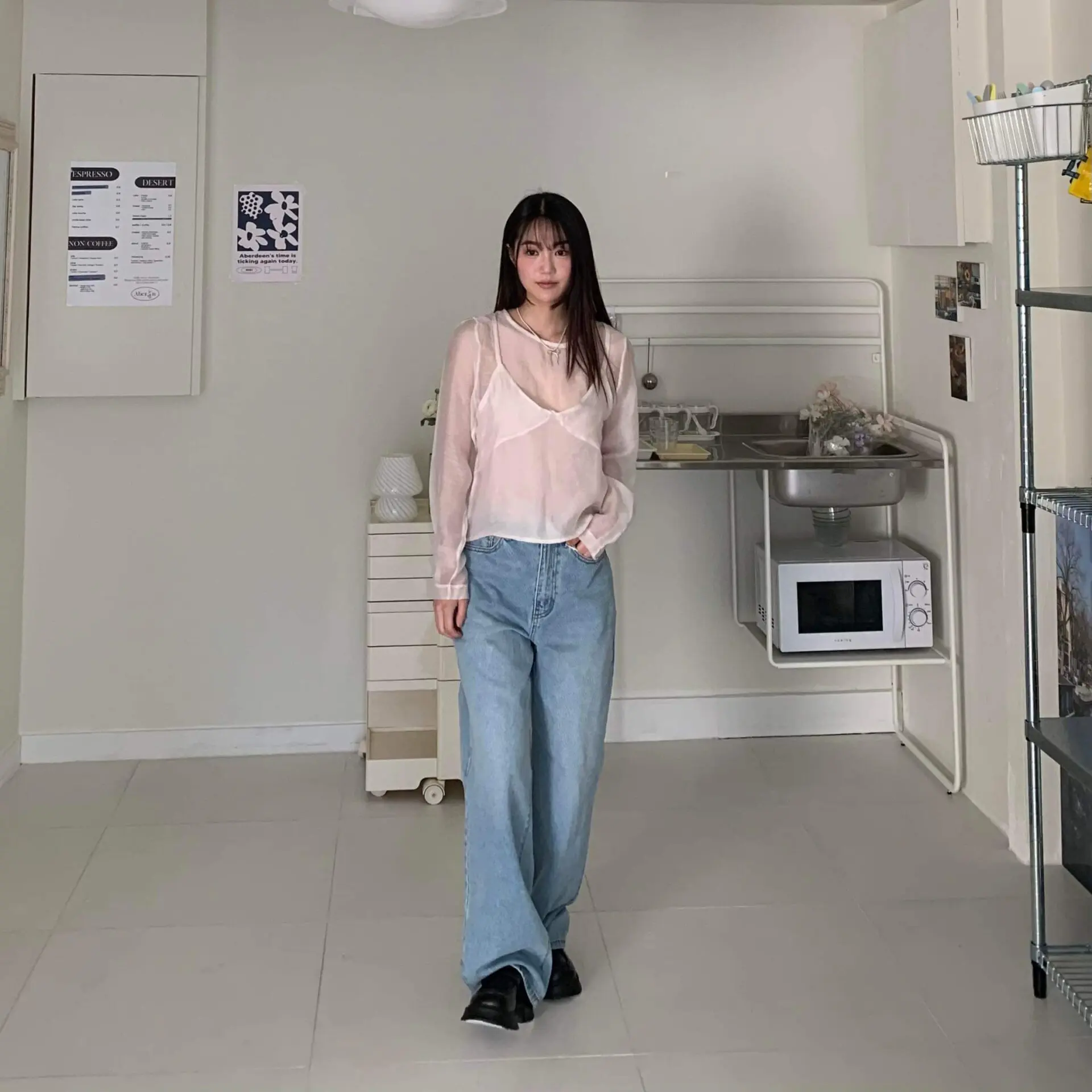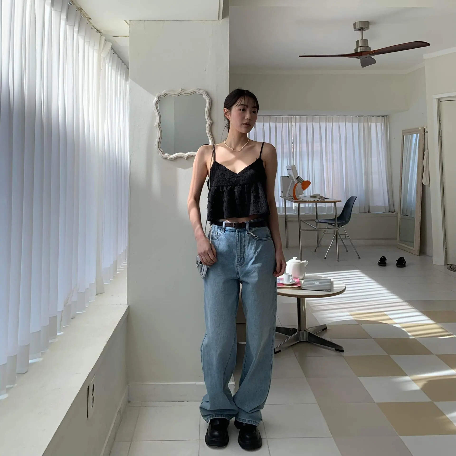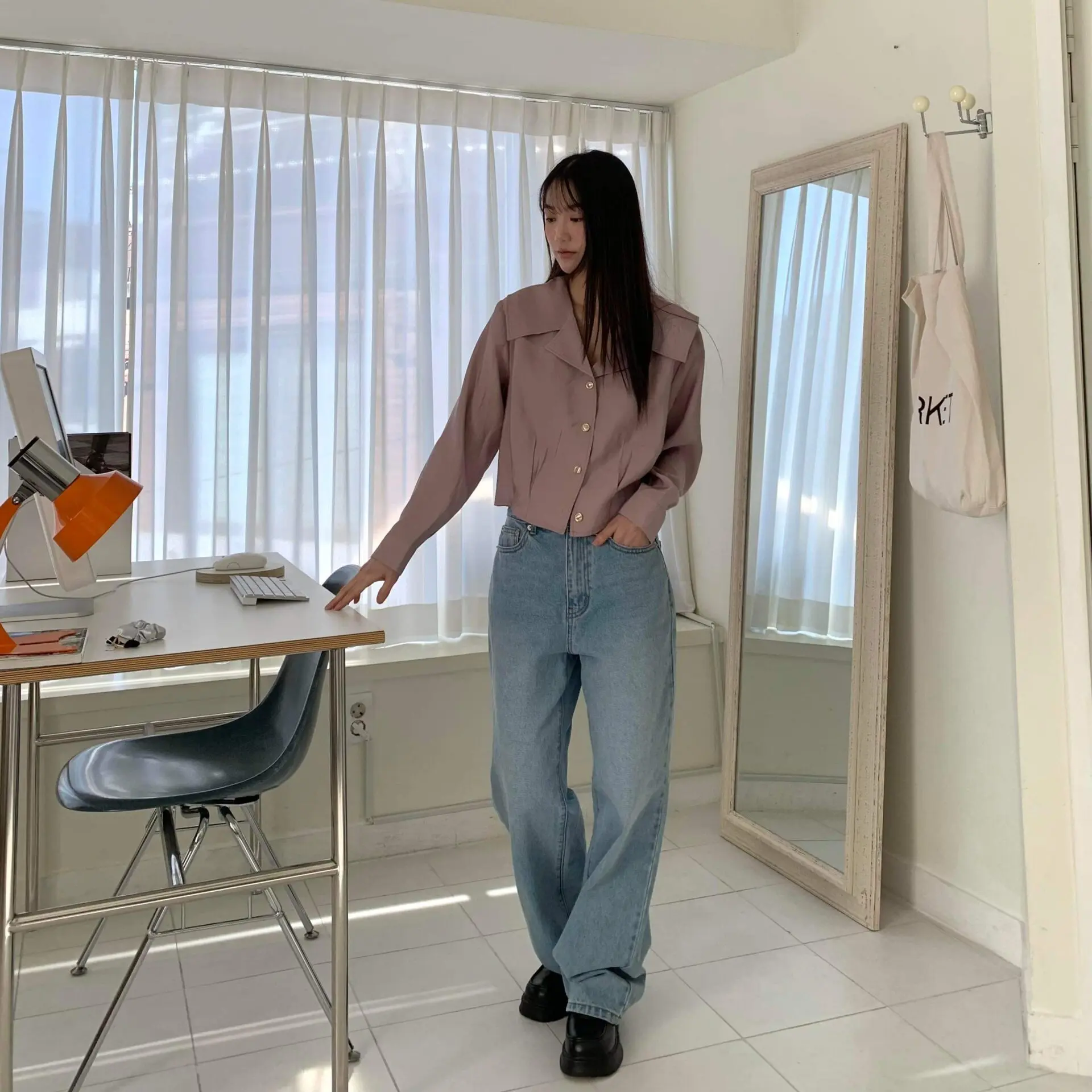 率性淺丹寧牛仔寬褲