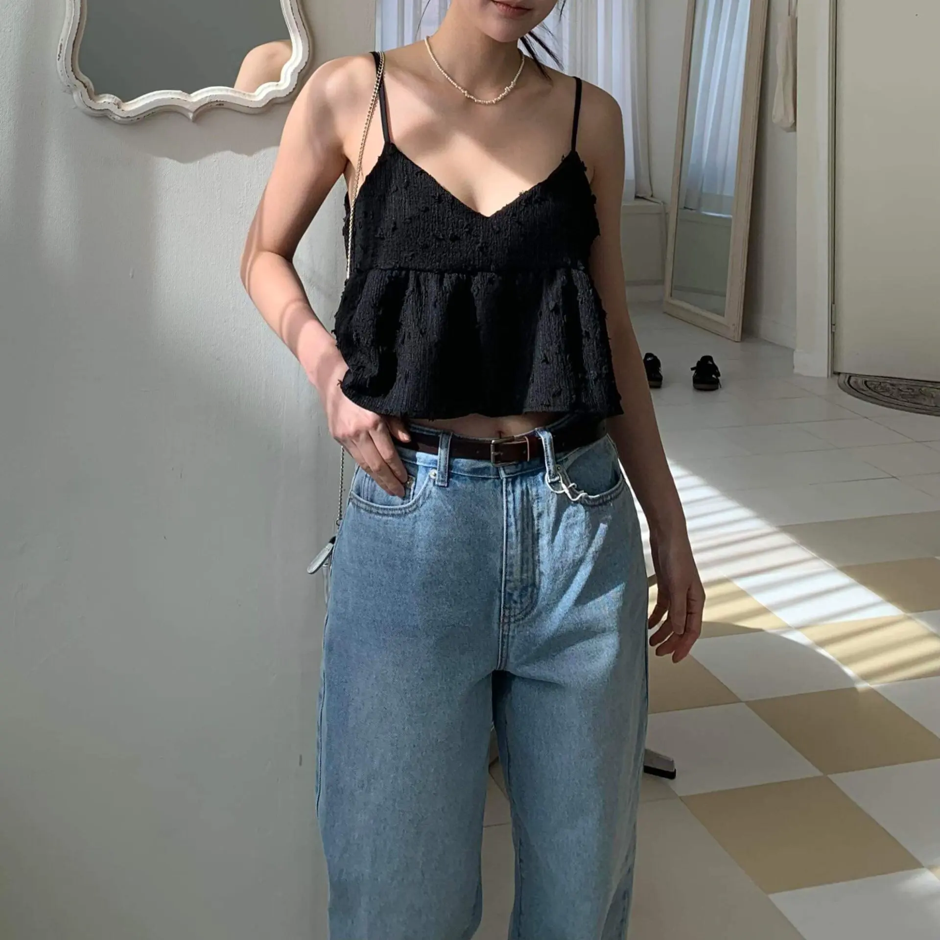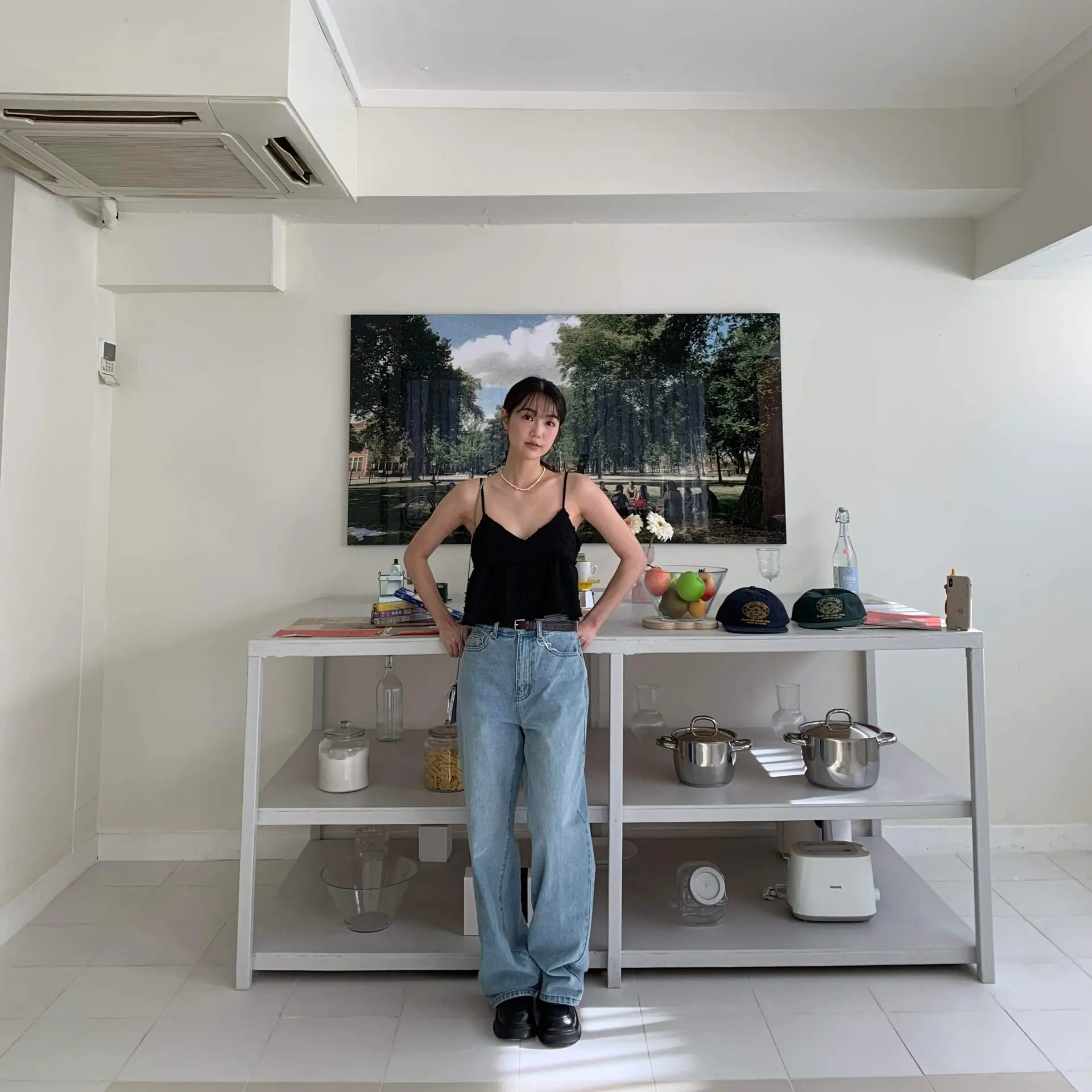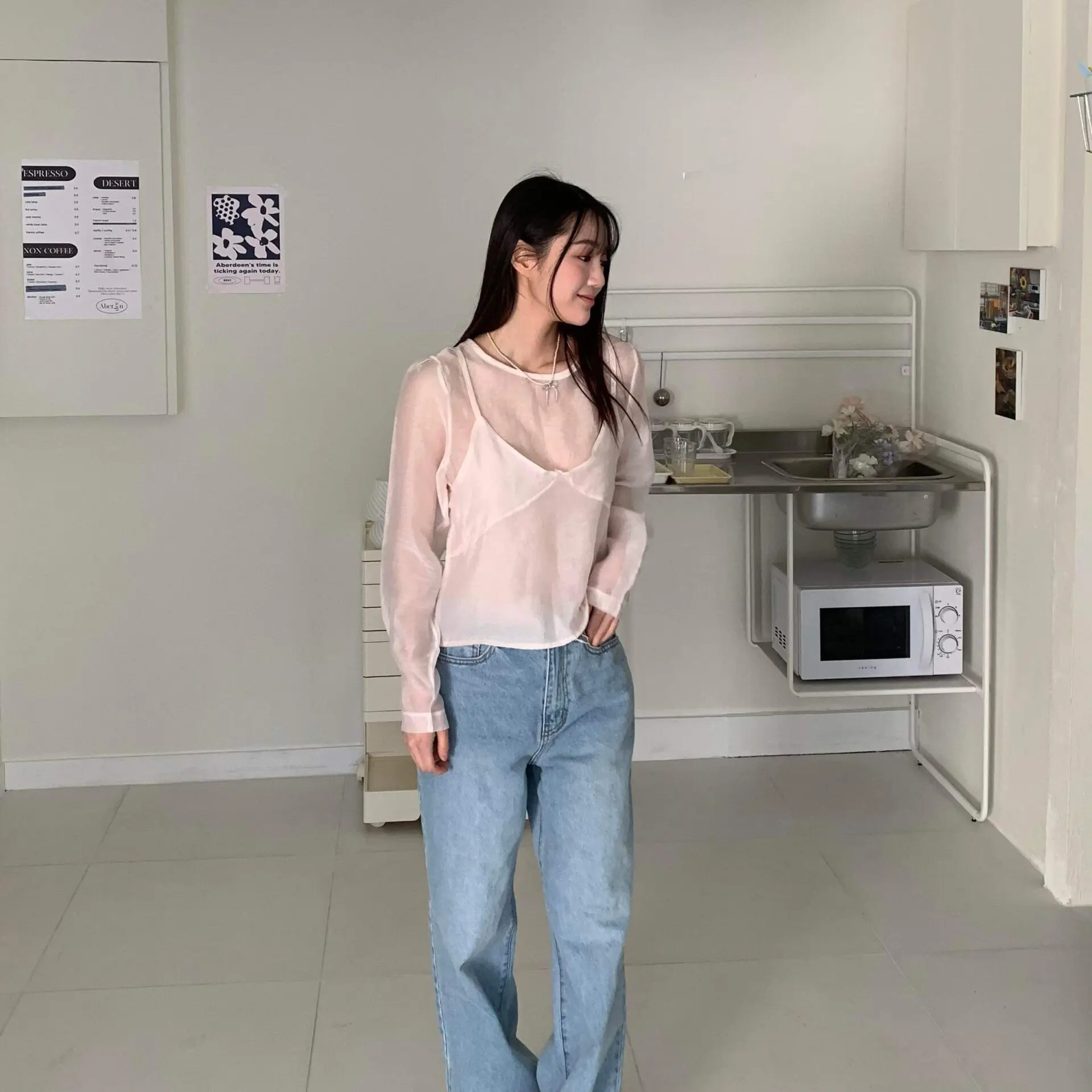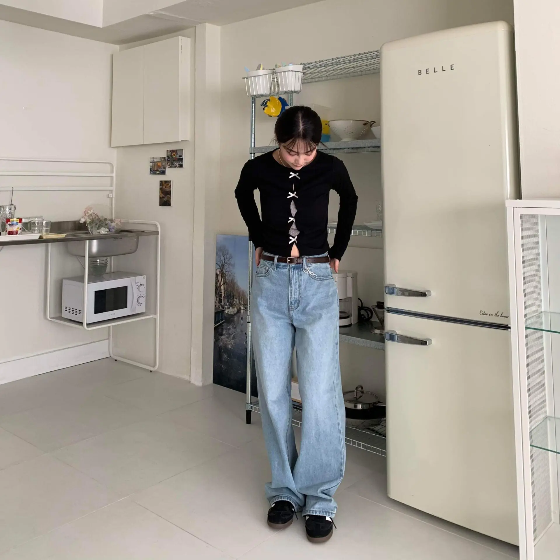 率性淺丹寧牛仔寬褲