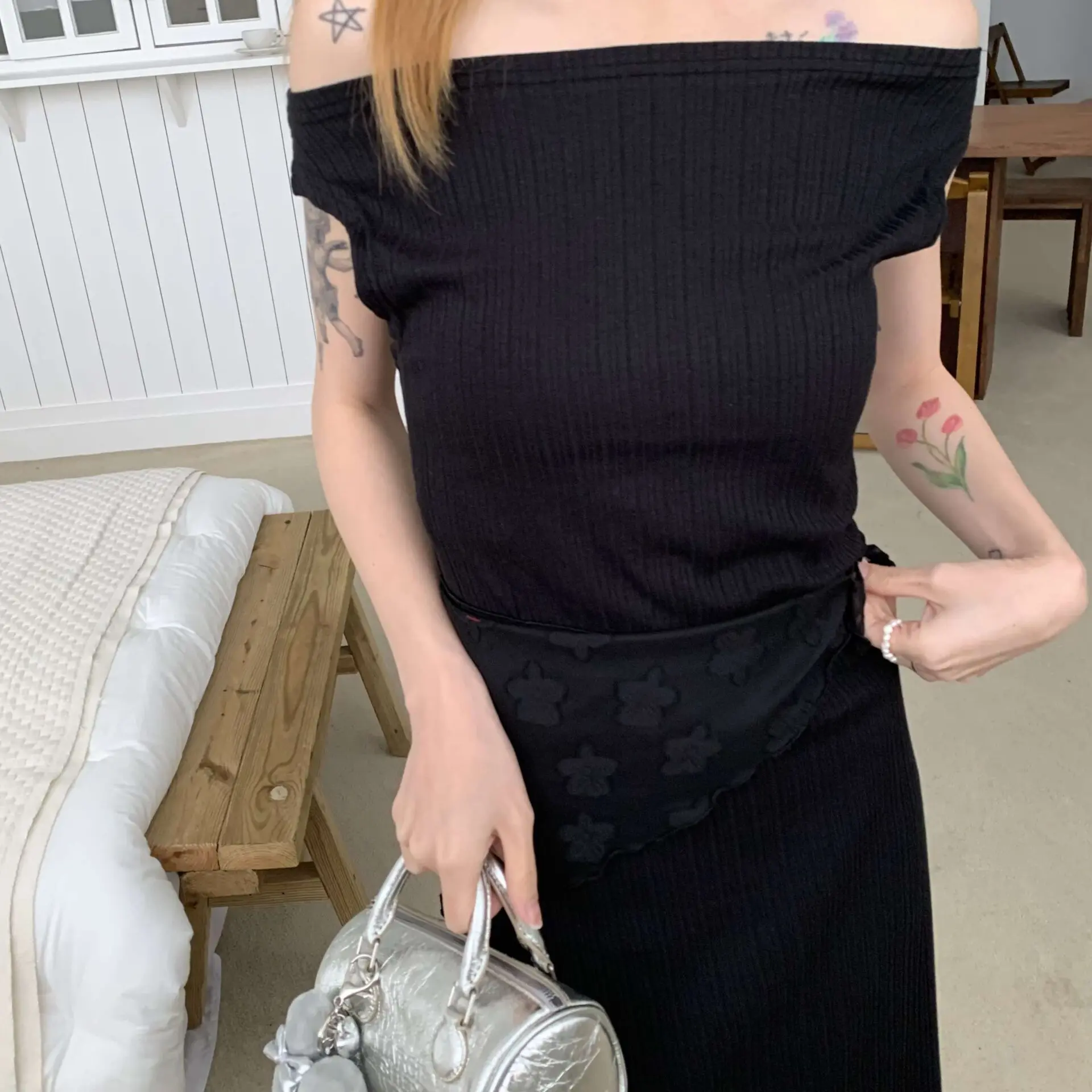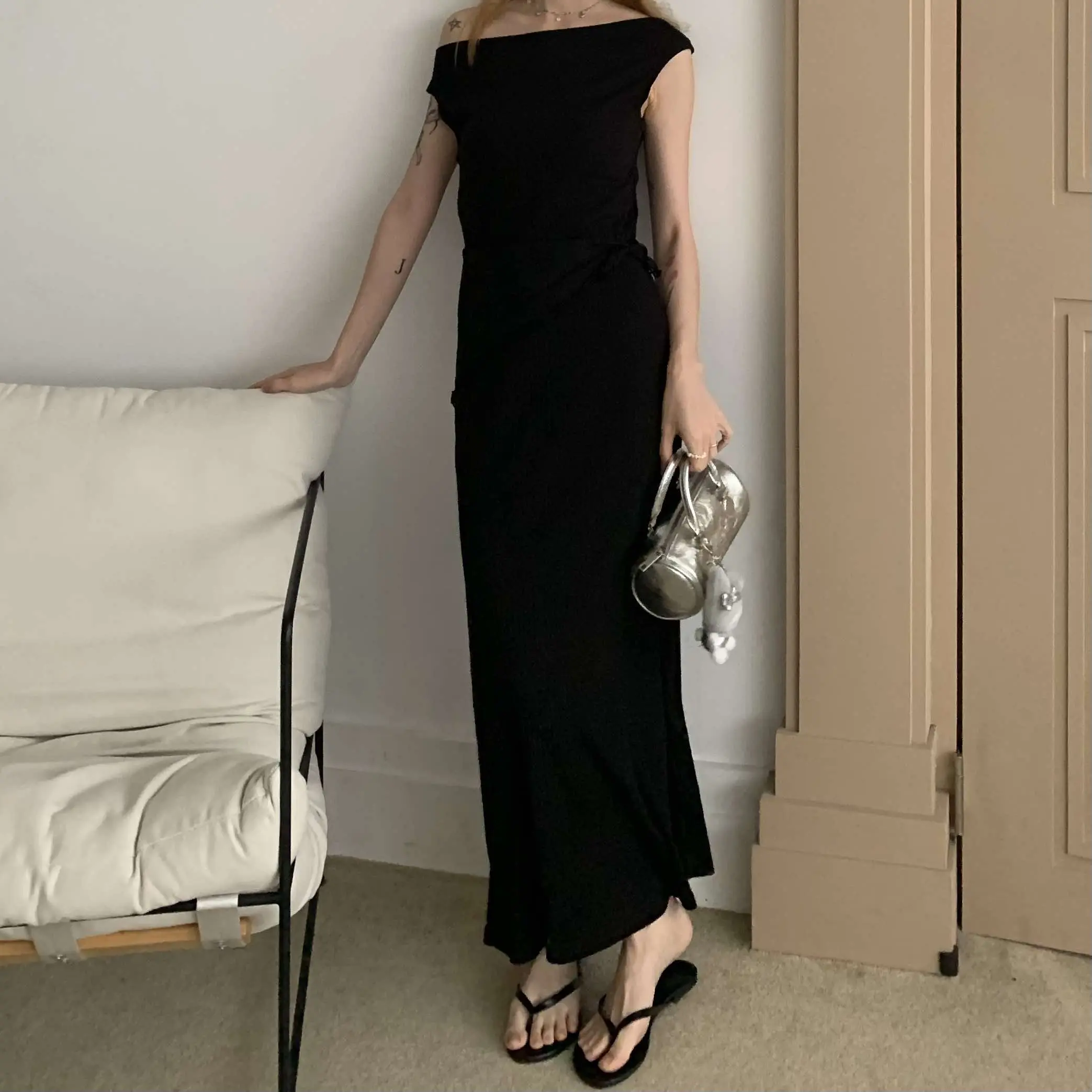 Bella坑條彈性洋裝 (黑)