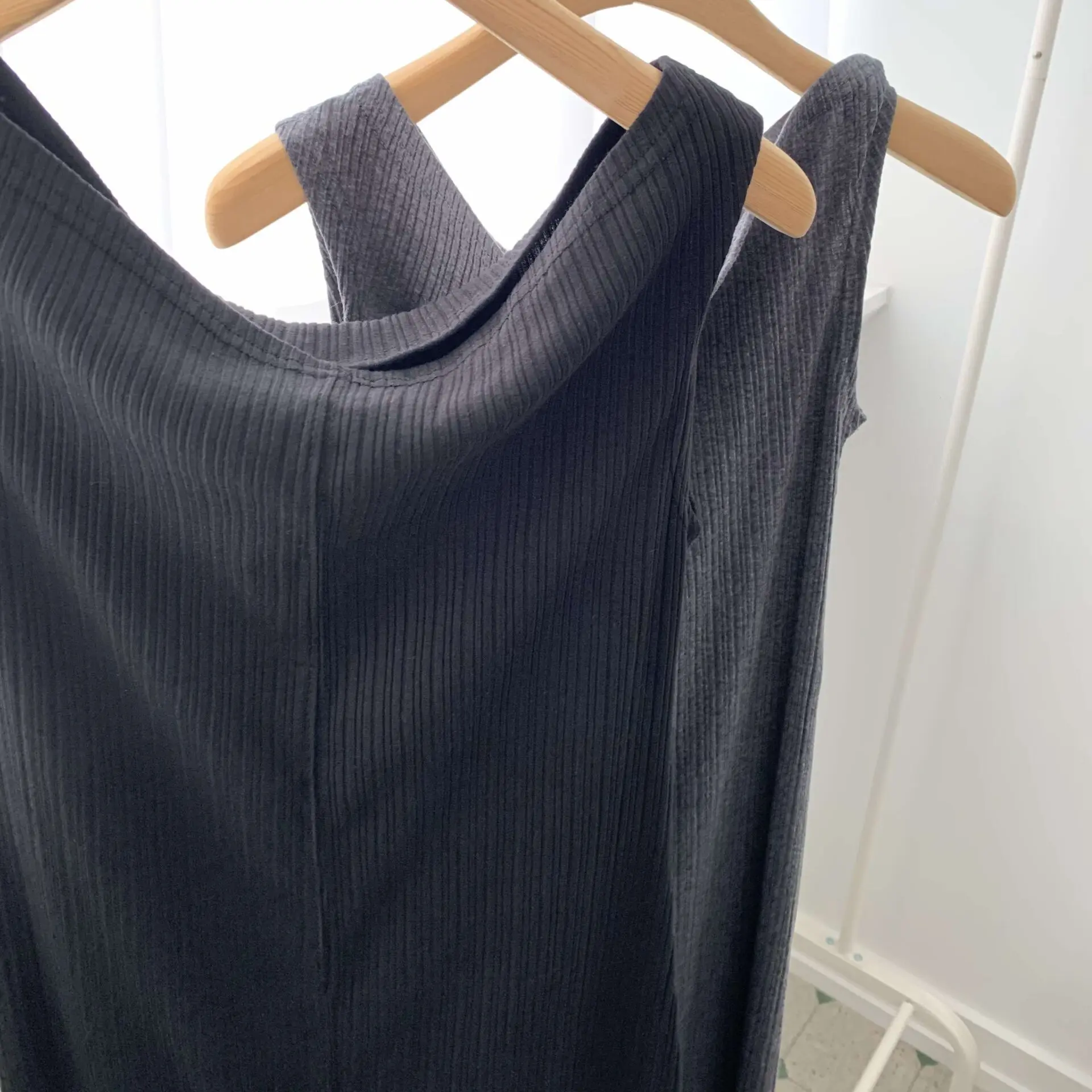 坑條的彈性棉質 穿起來順身不緊身