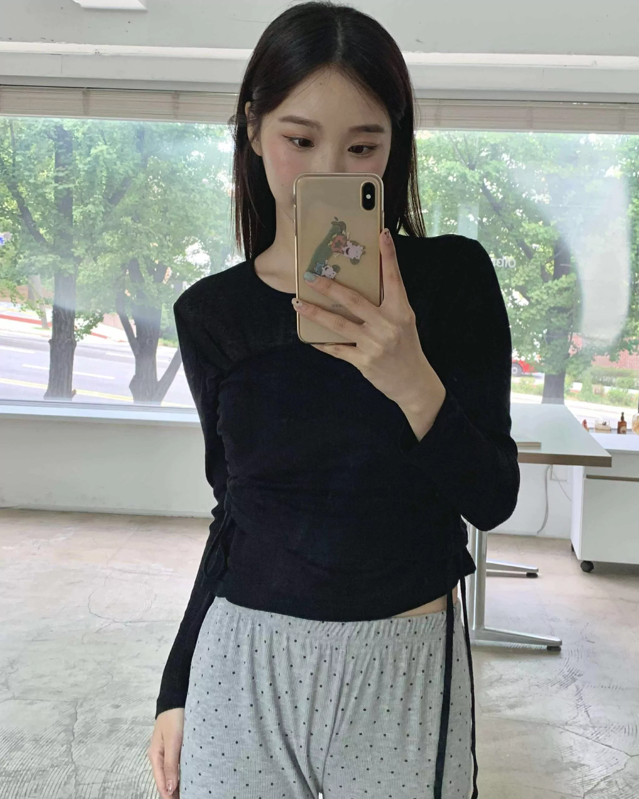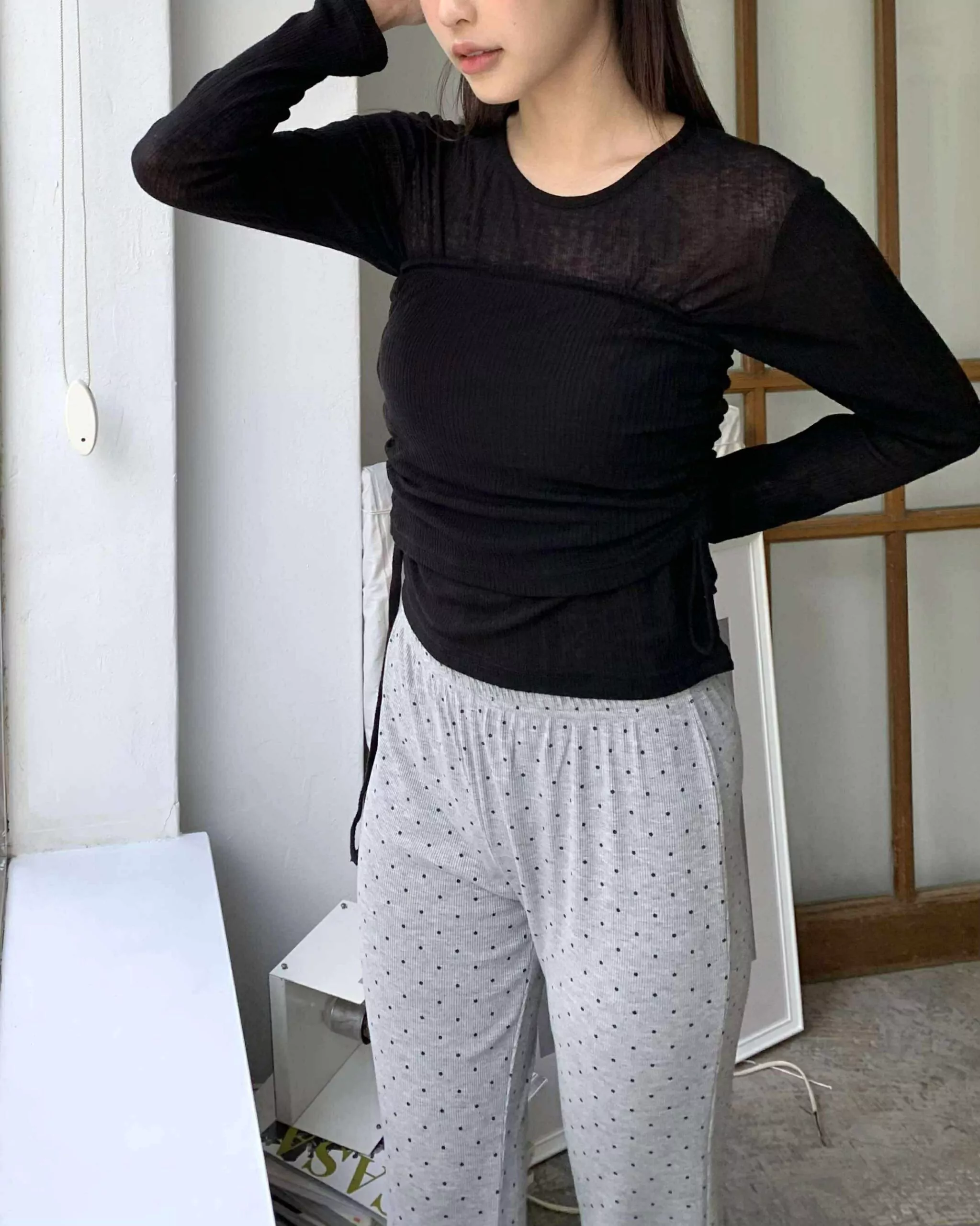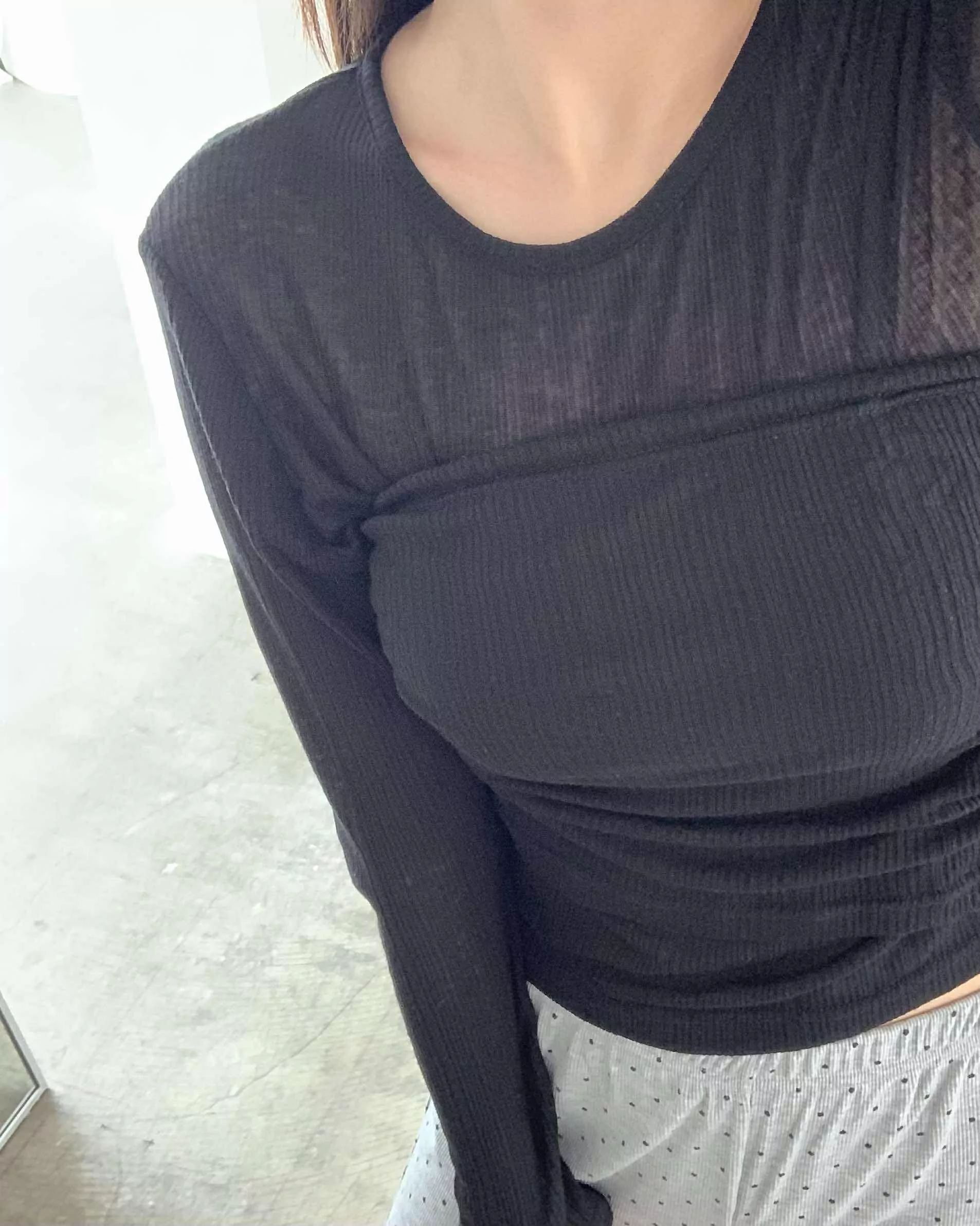 坑條彈性親膚面料,本身一件就是很漂亮的打底衣,