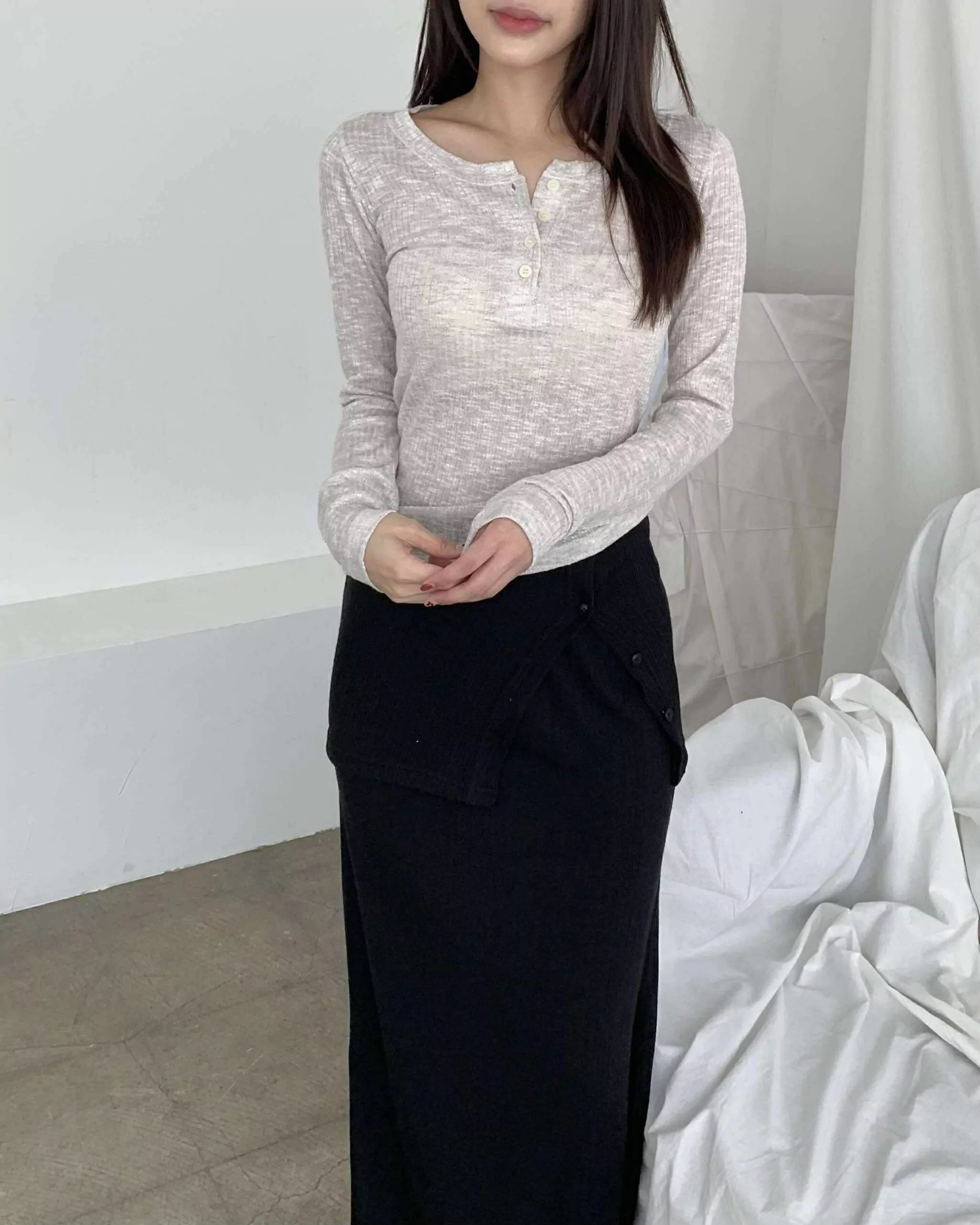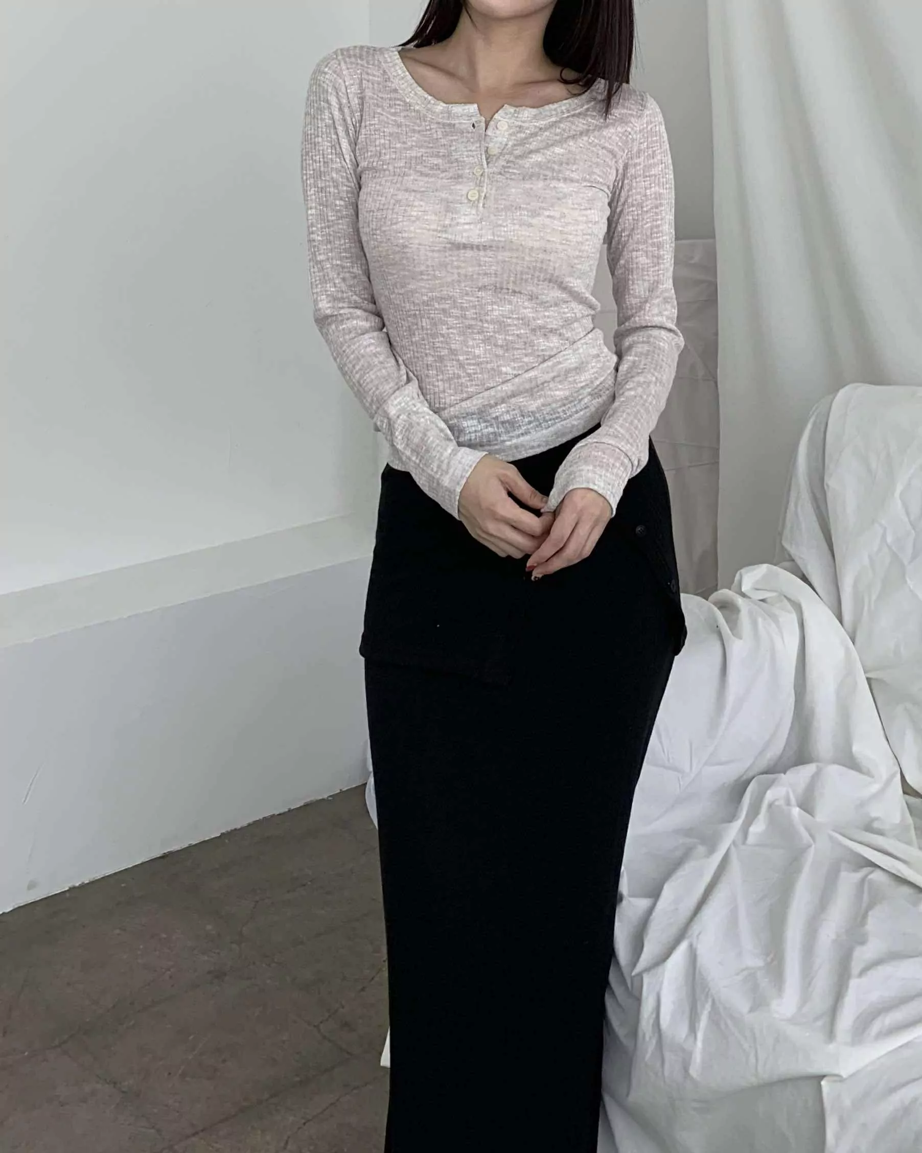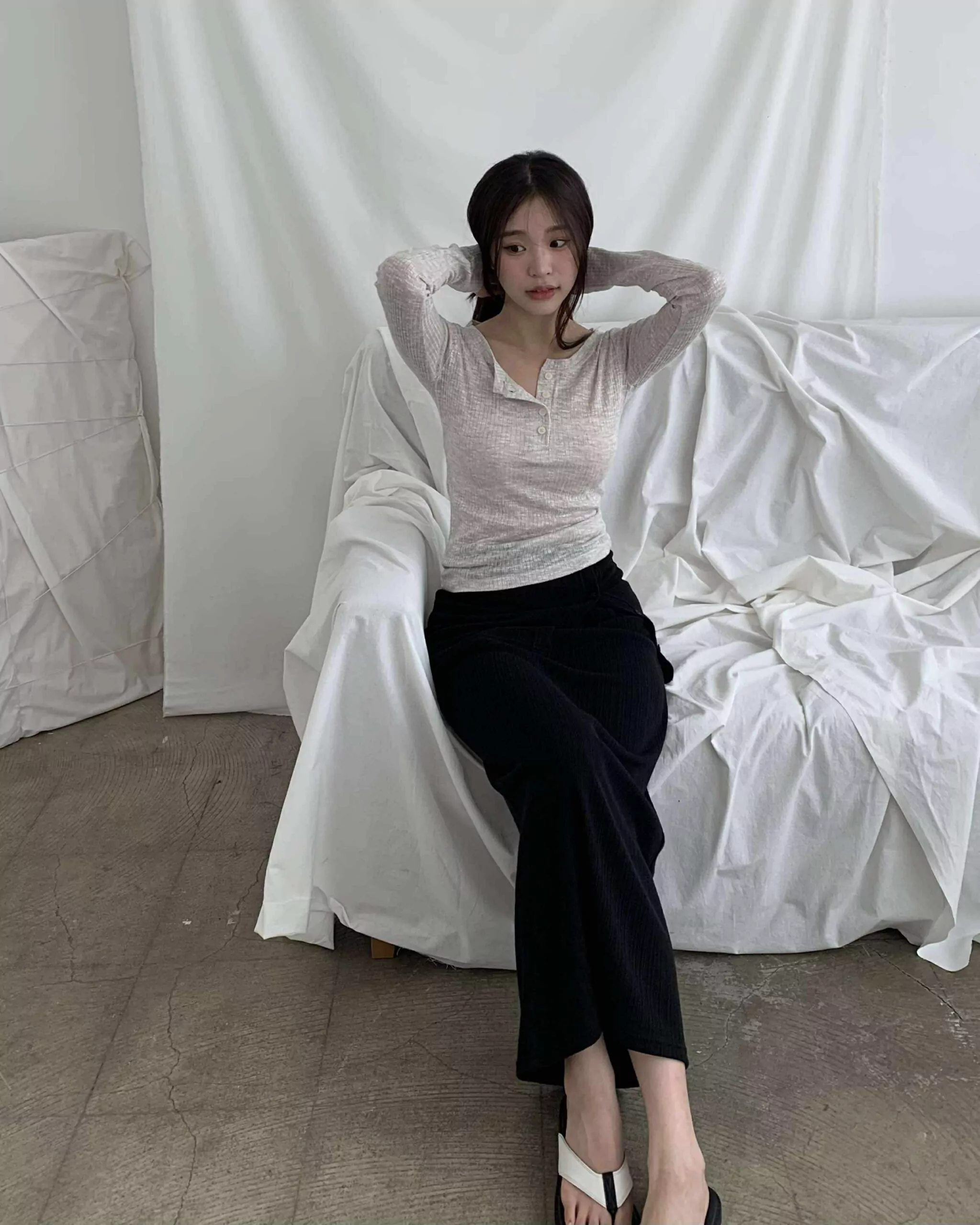 簡約的小開釦設計 壓紋坑條&透透的質感彈性面料