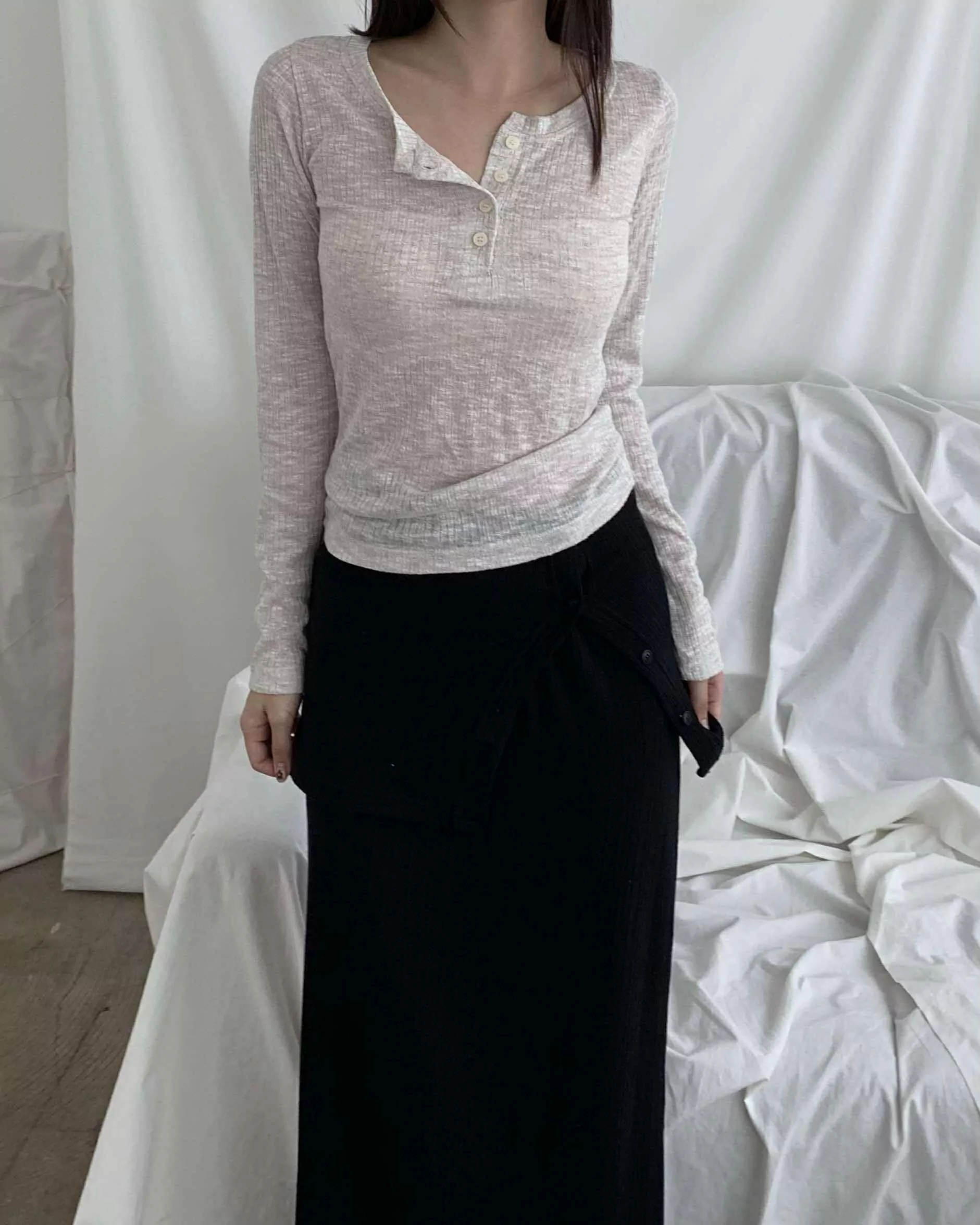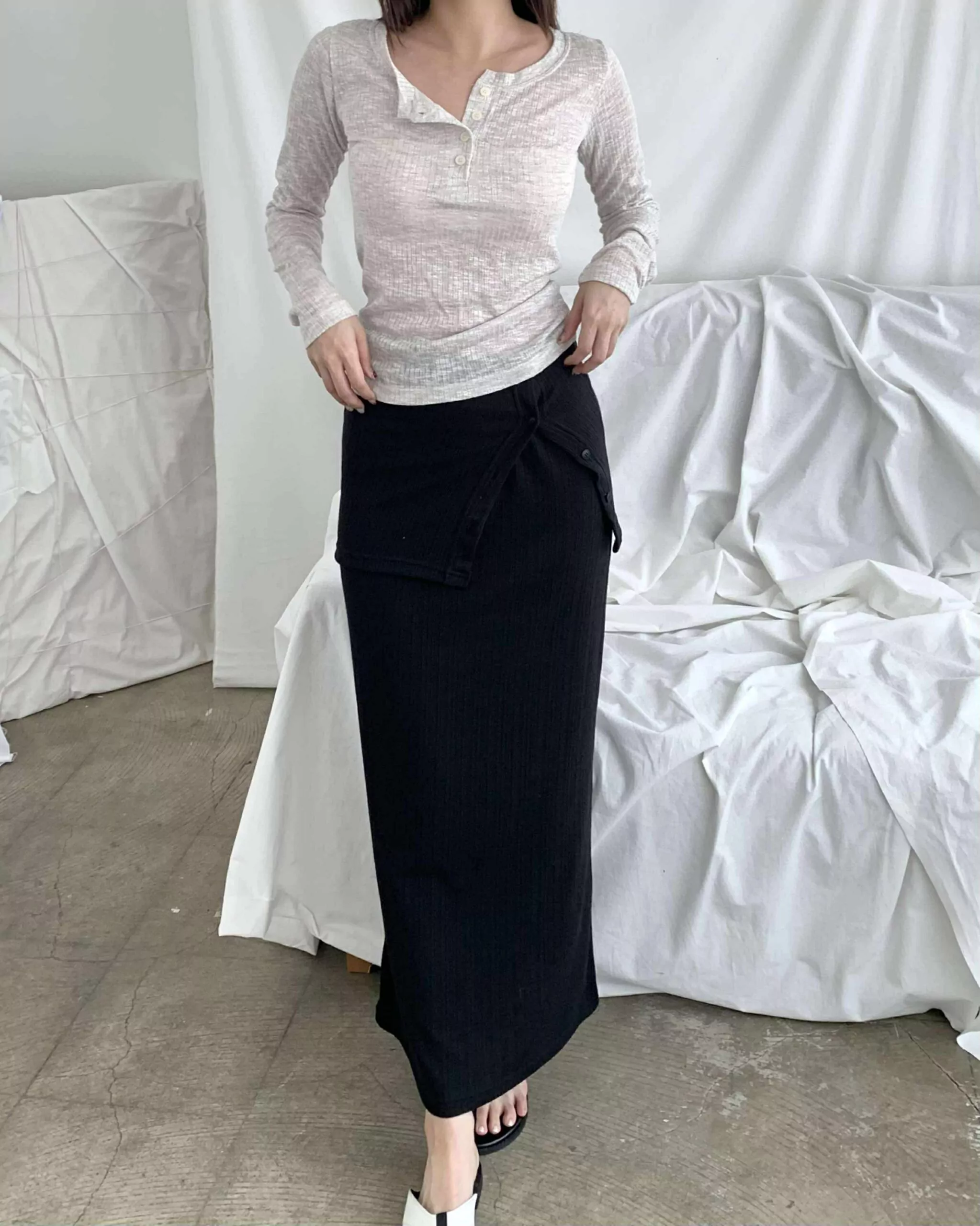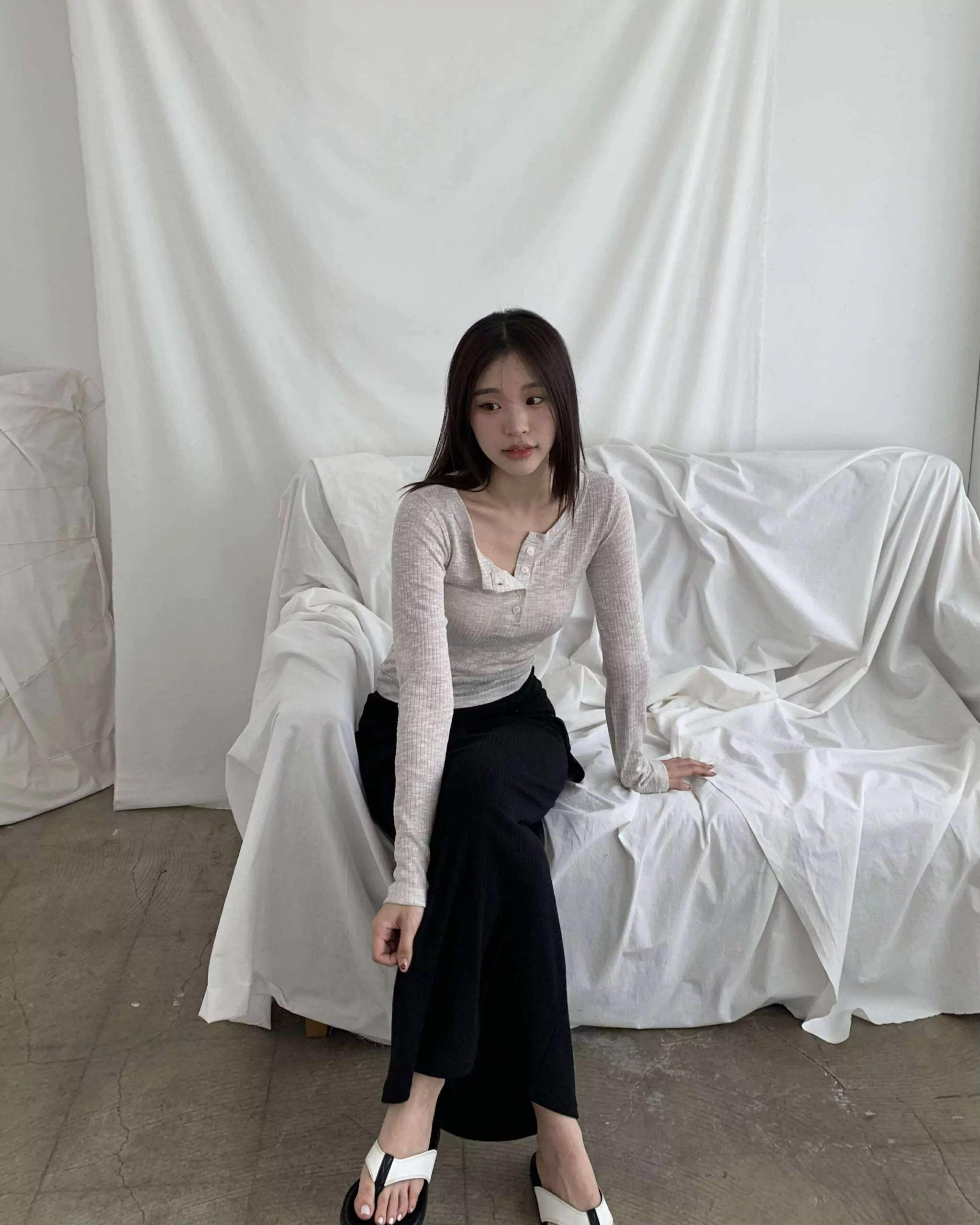 簡約的小開釦設計 壓紋坑條&透透的質感彈性面料