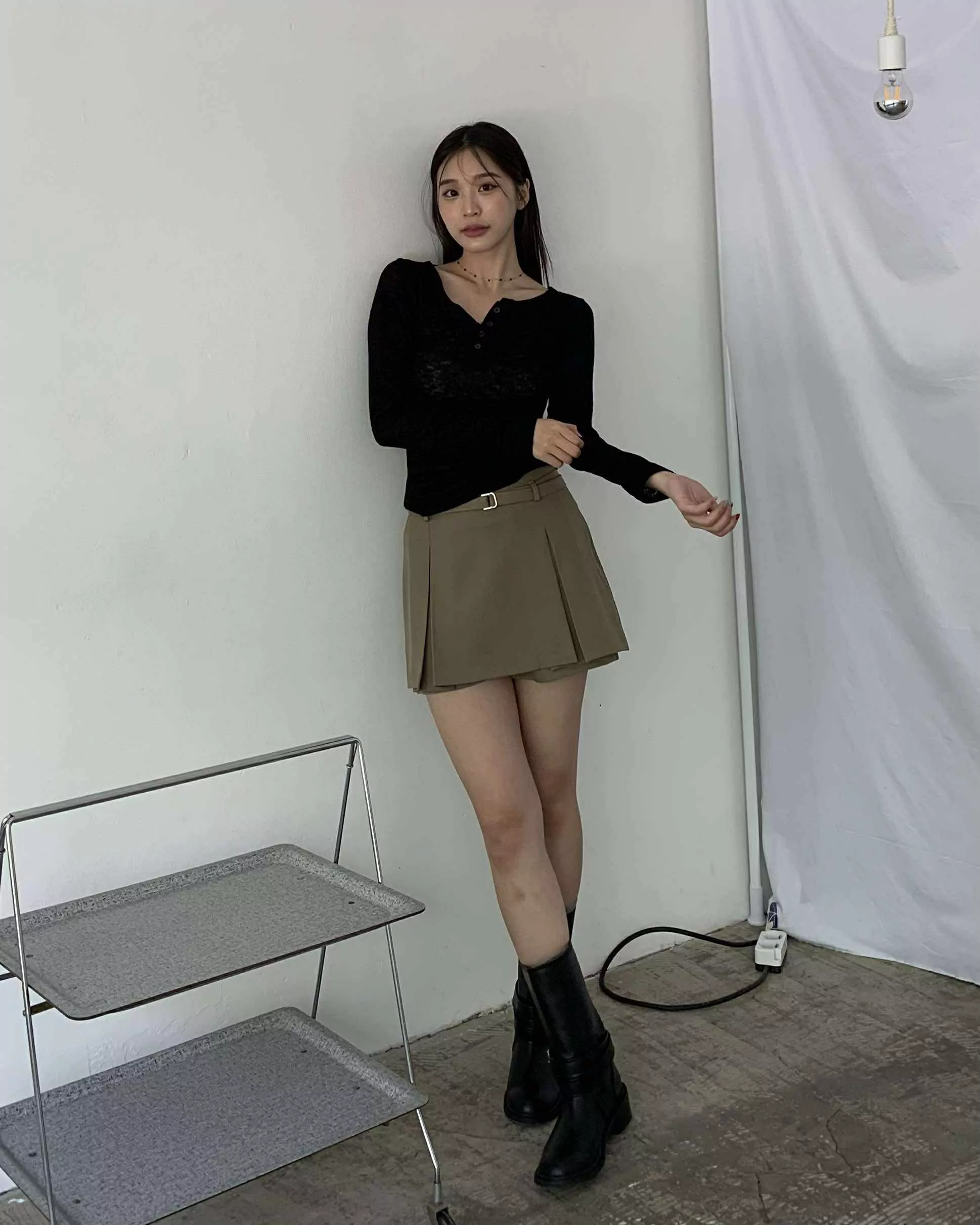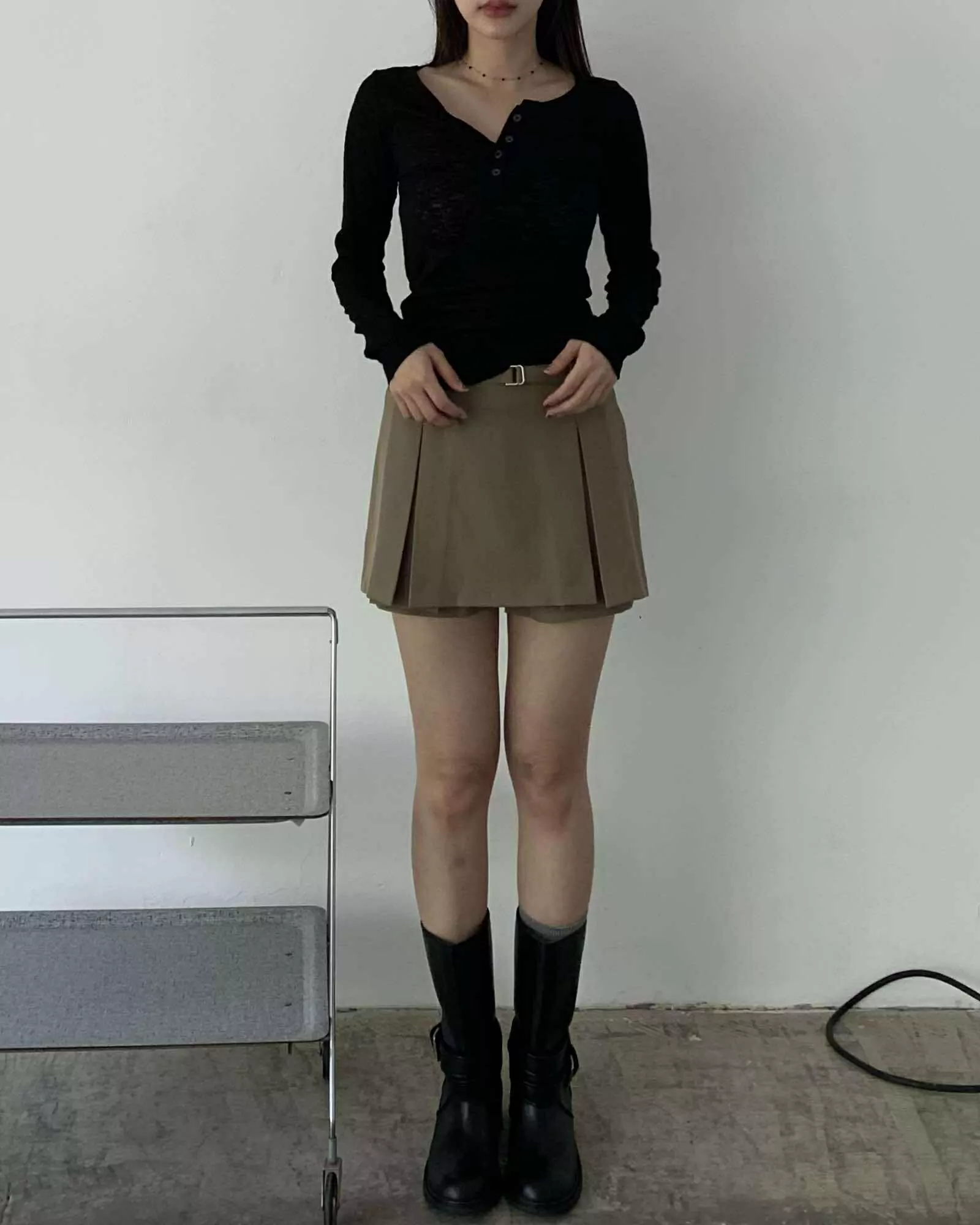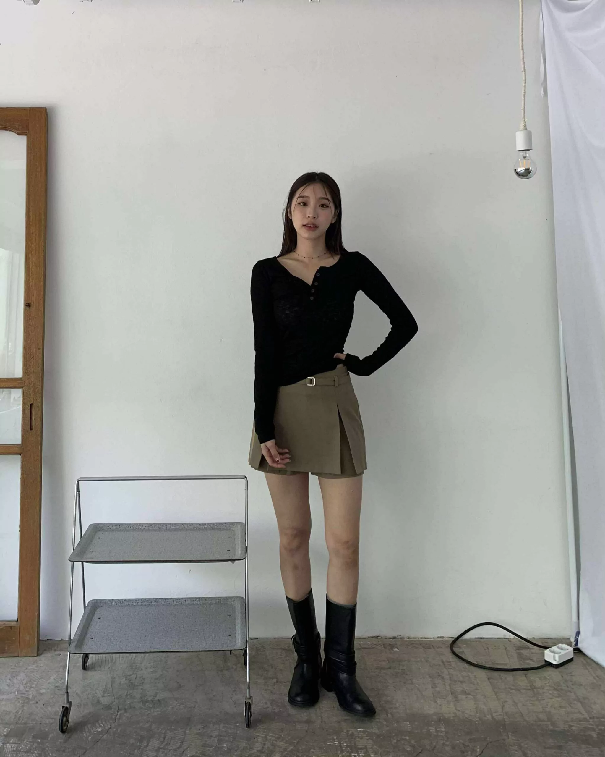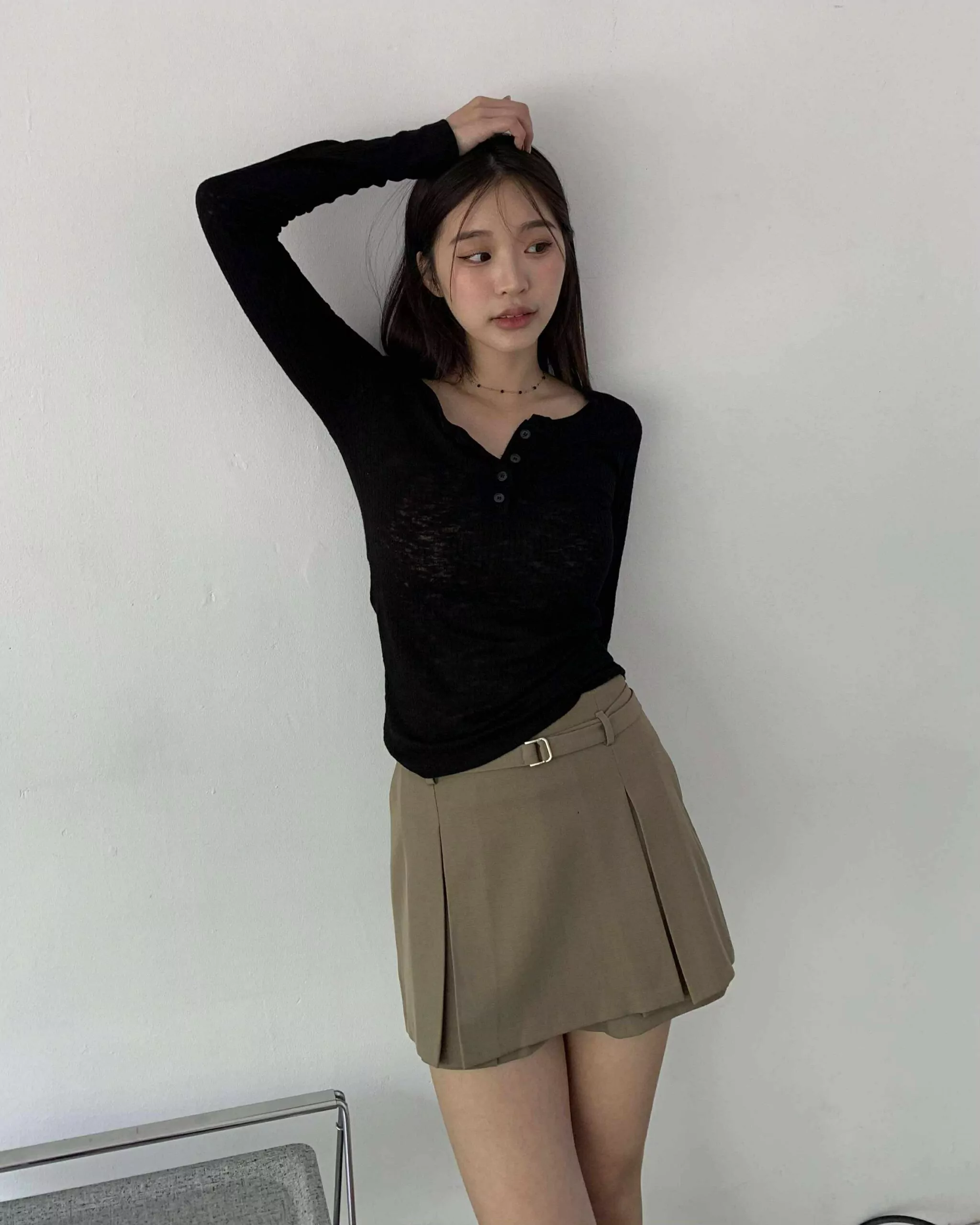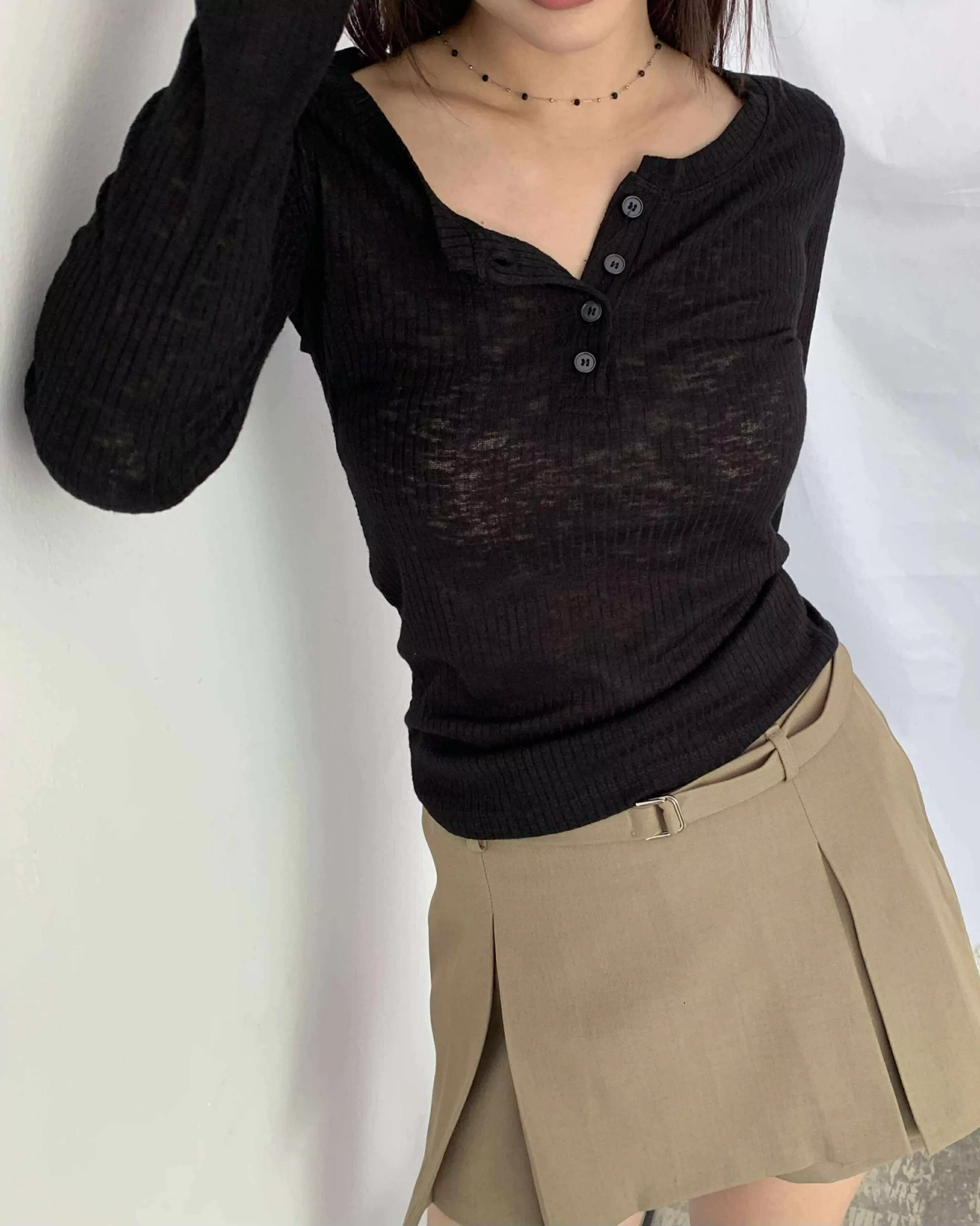 簡約的小開釦設計 壓紋坑條&透透的質感彈性面料