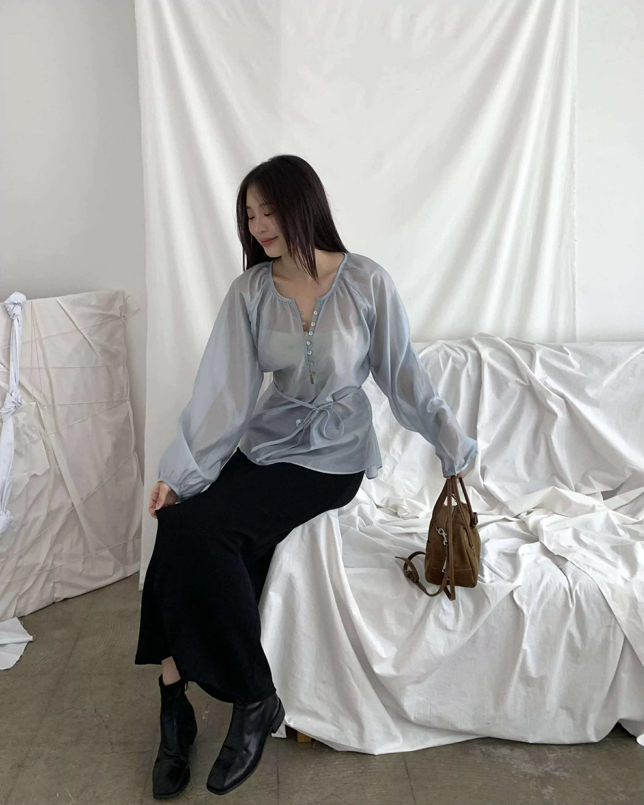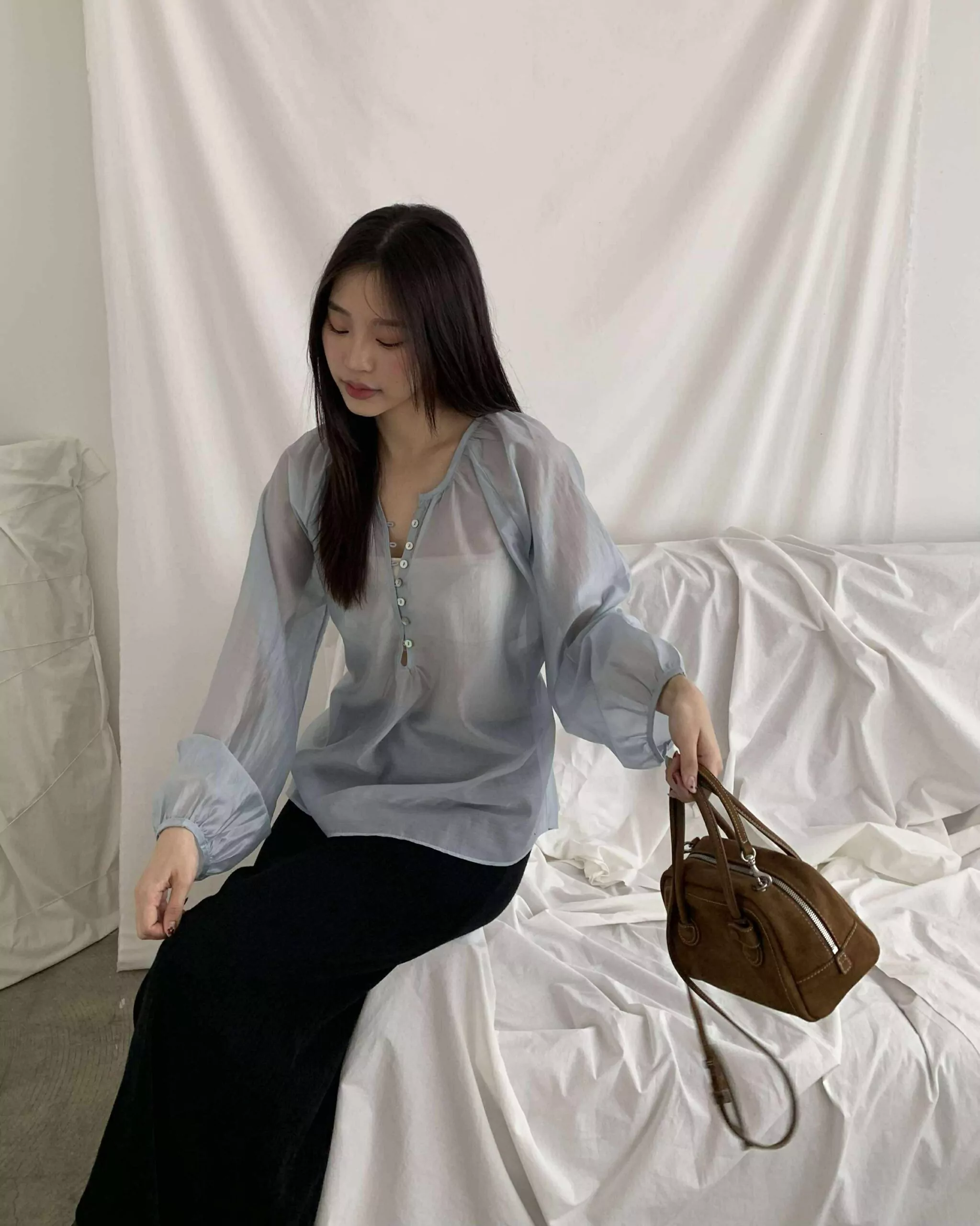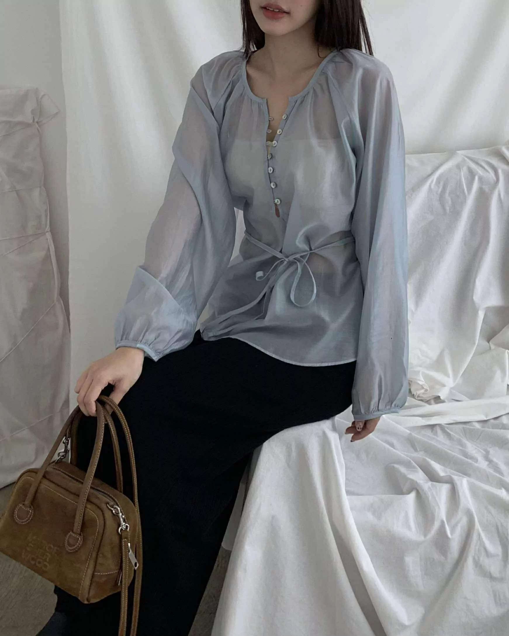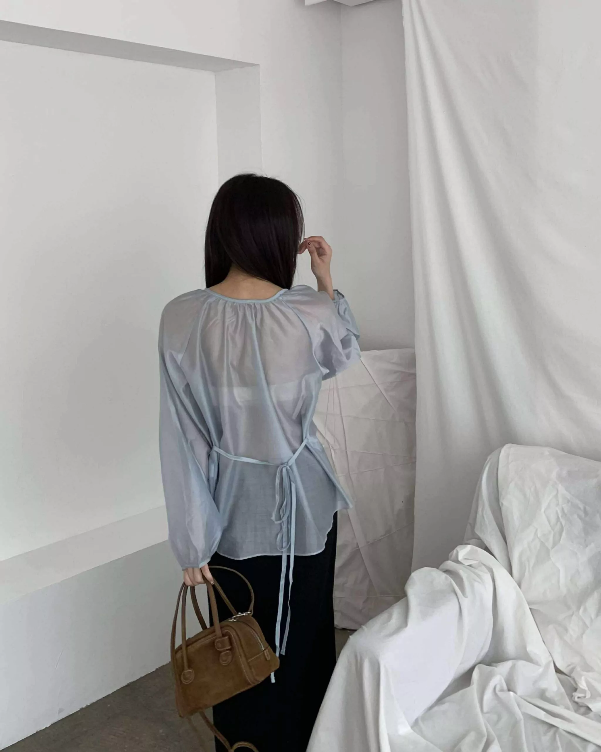 狎鷗亭高冷美女光澤上衣 (藍)