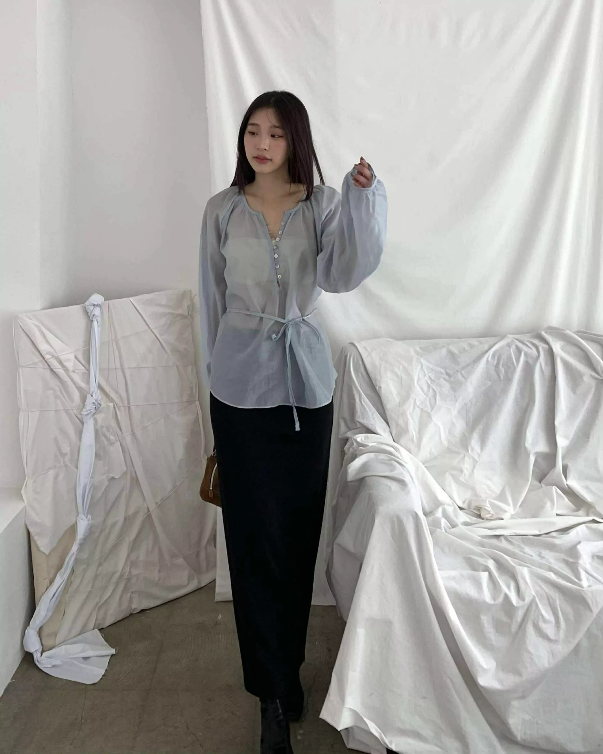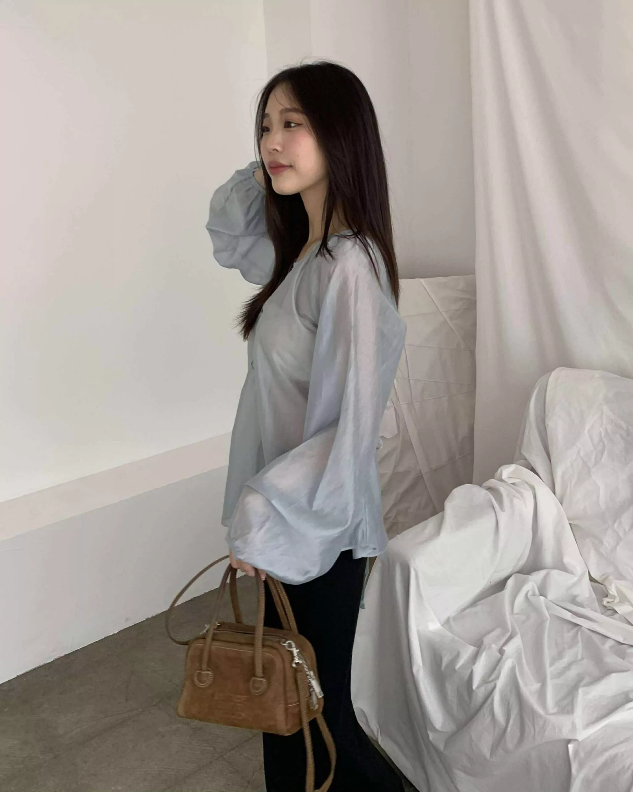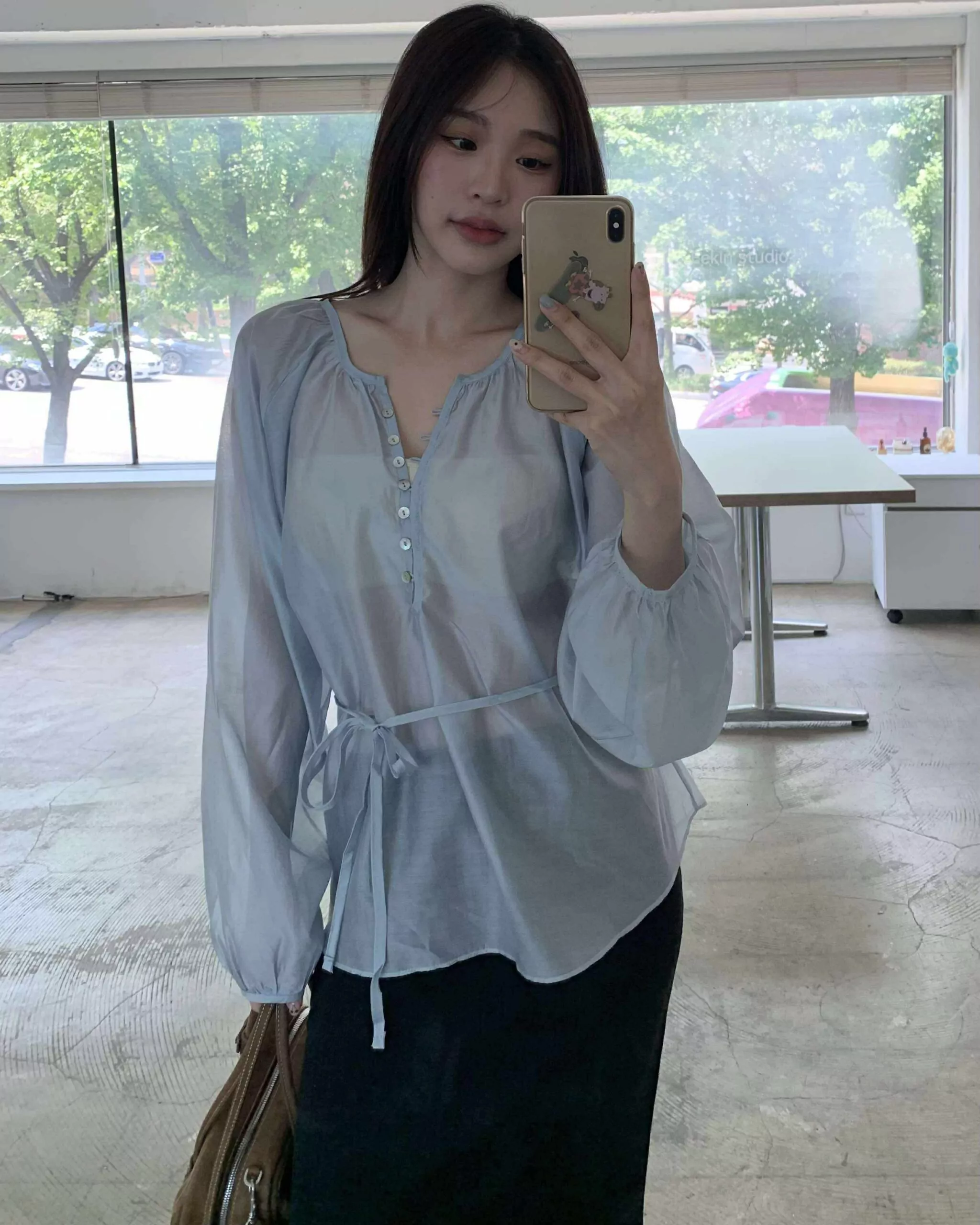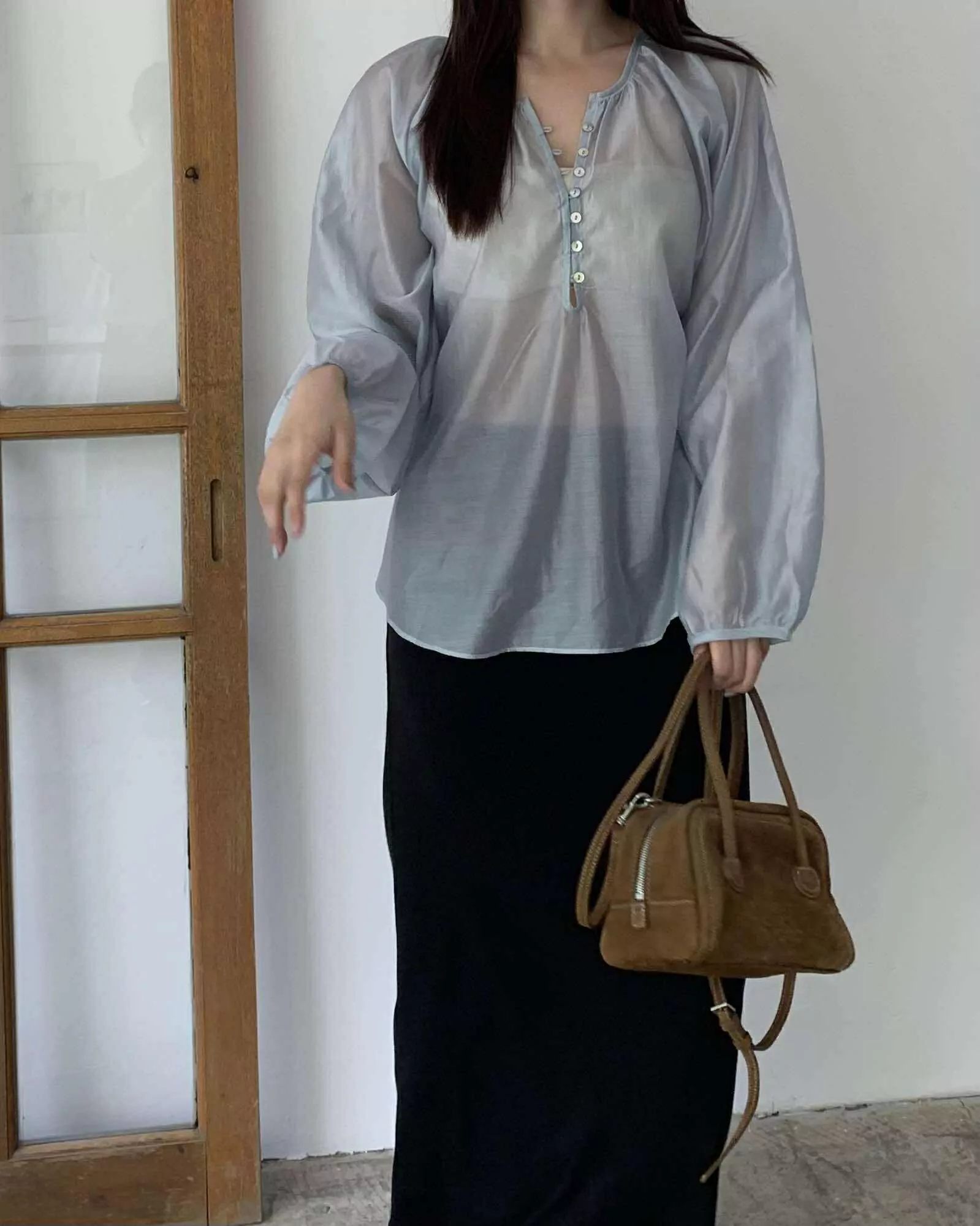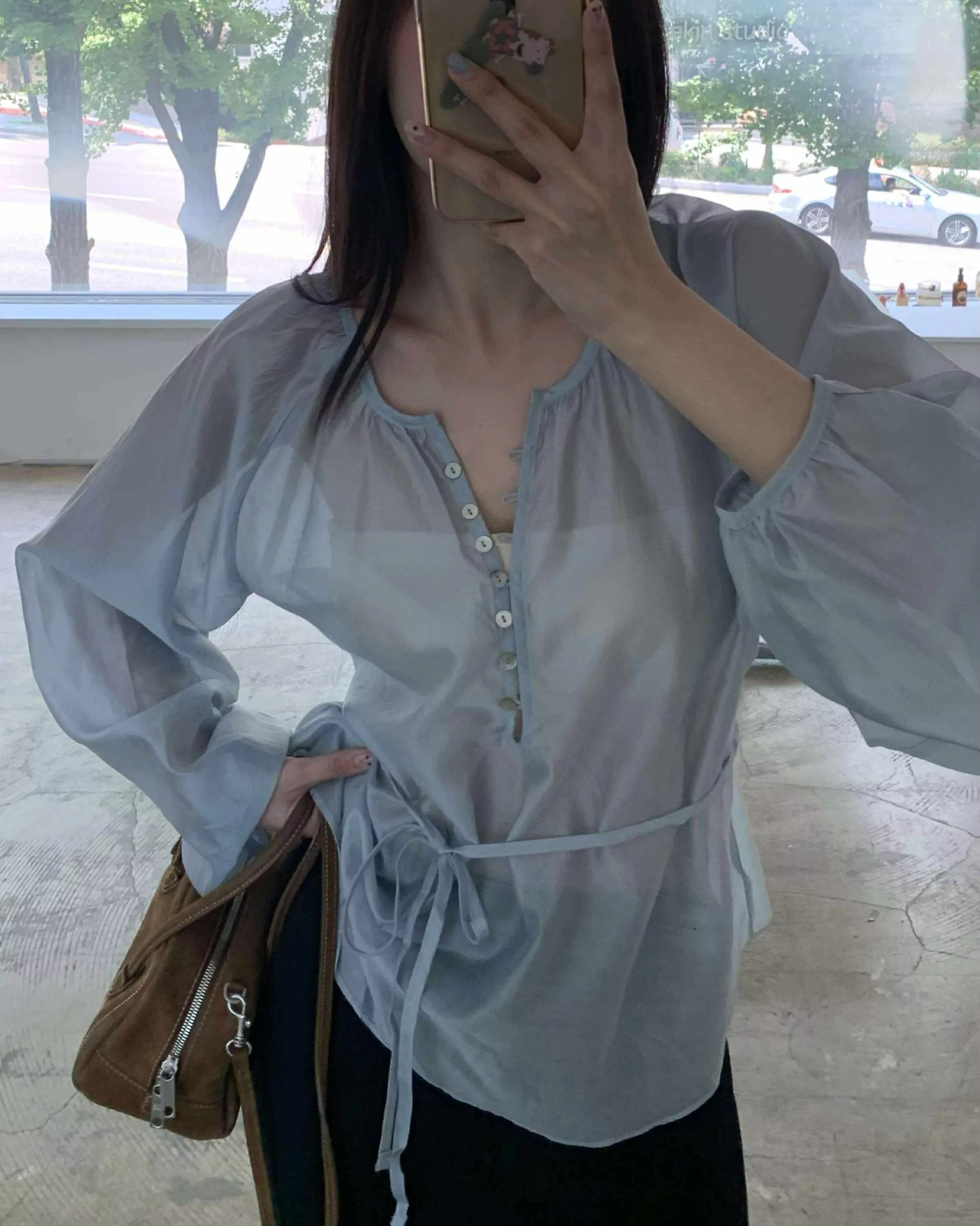 狎鷗亭高冷美女光澤上衣 (藍)