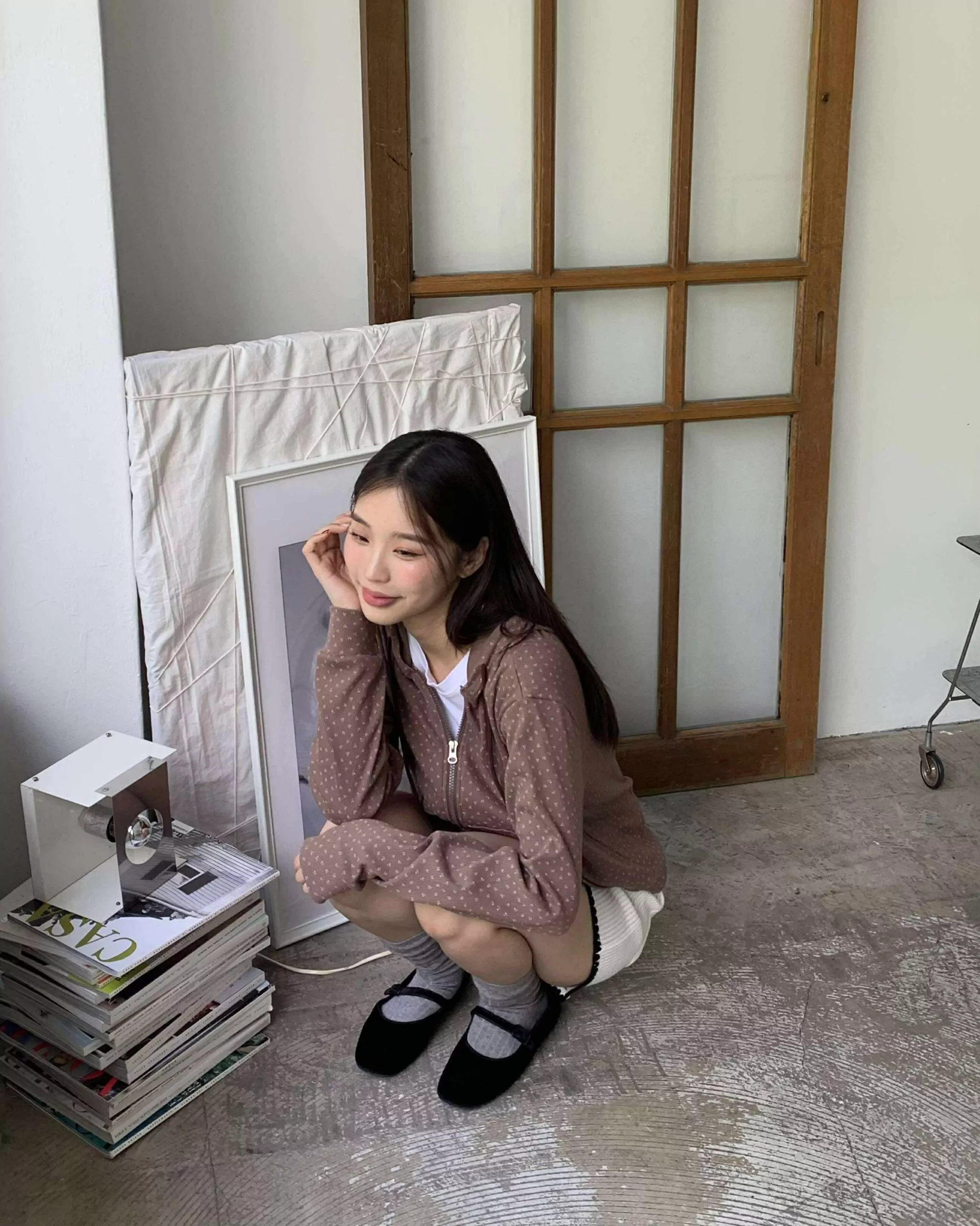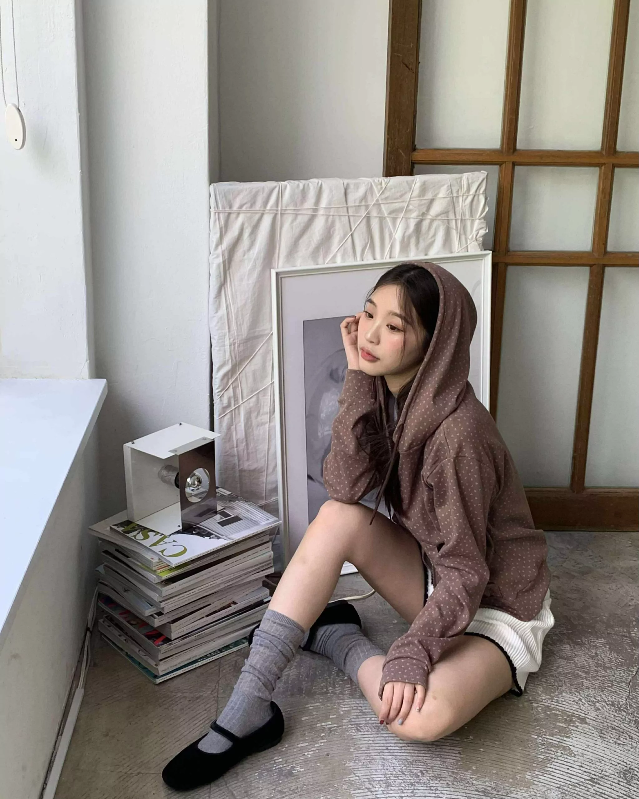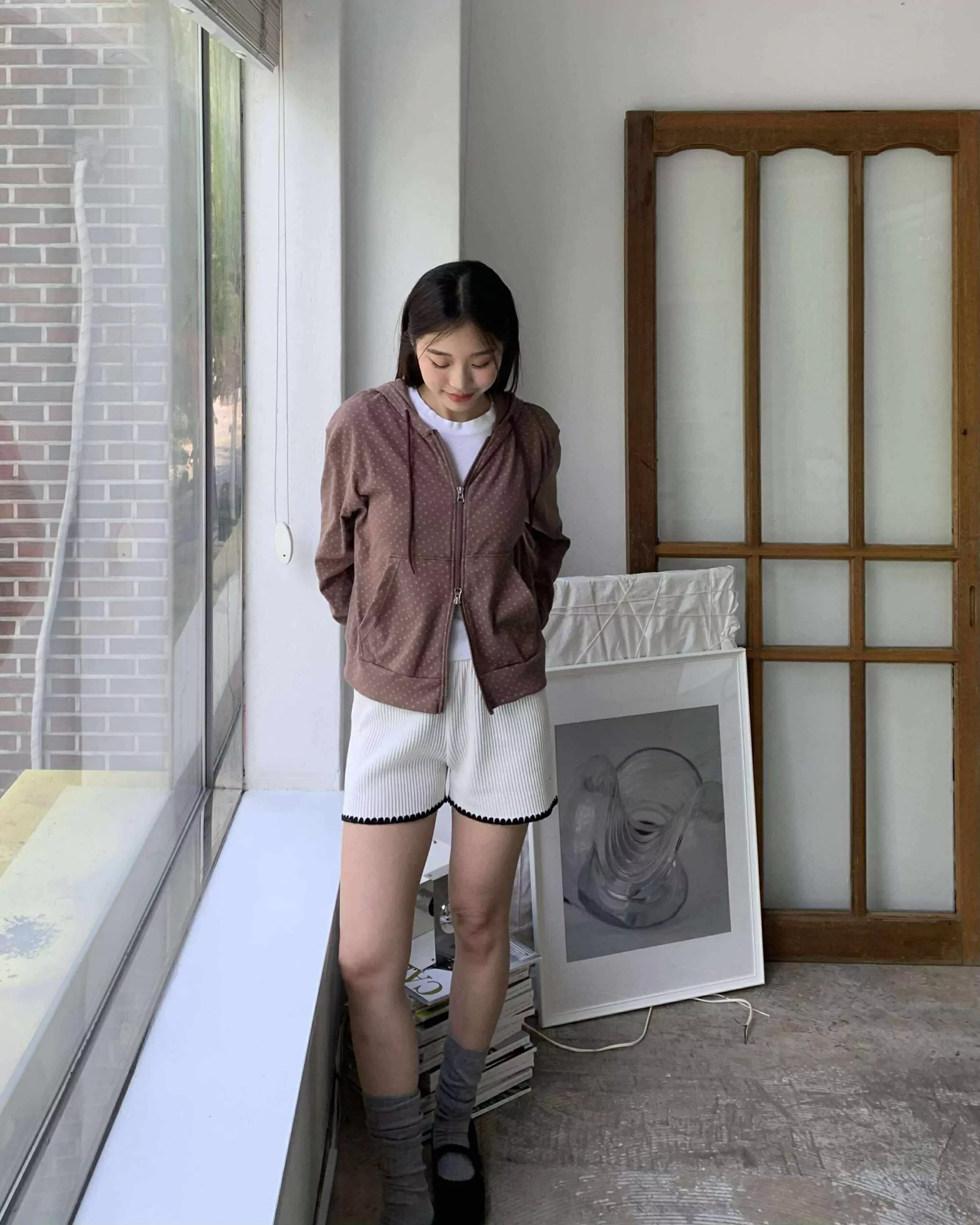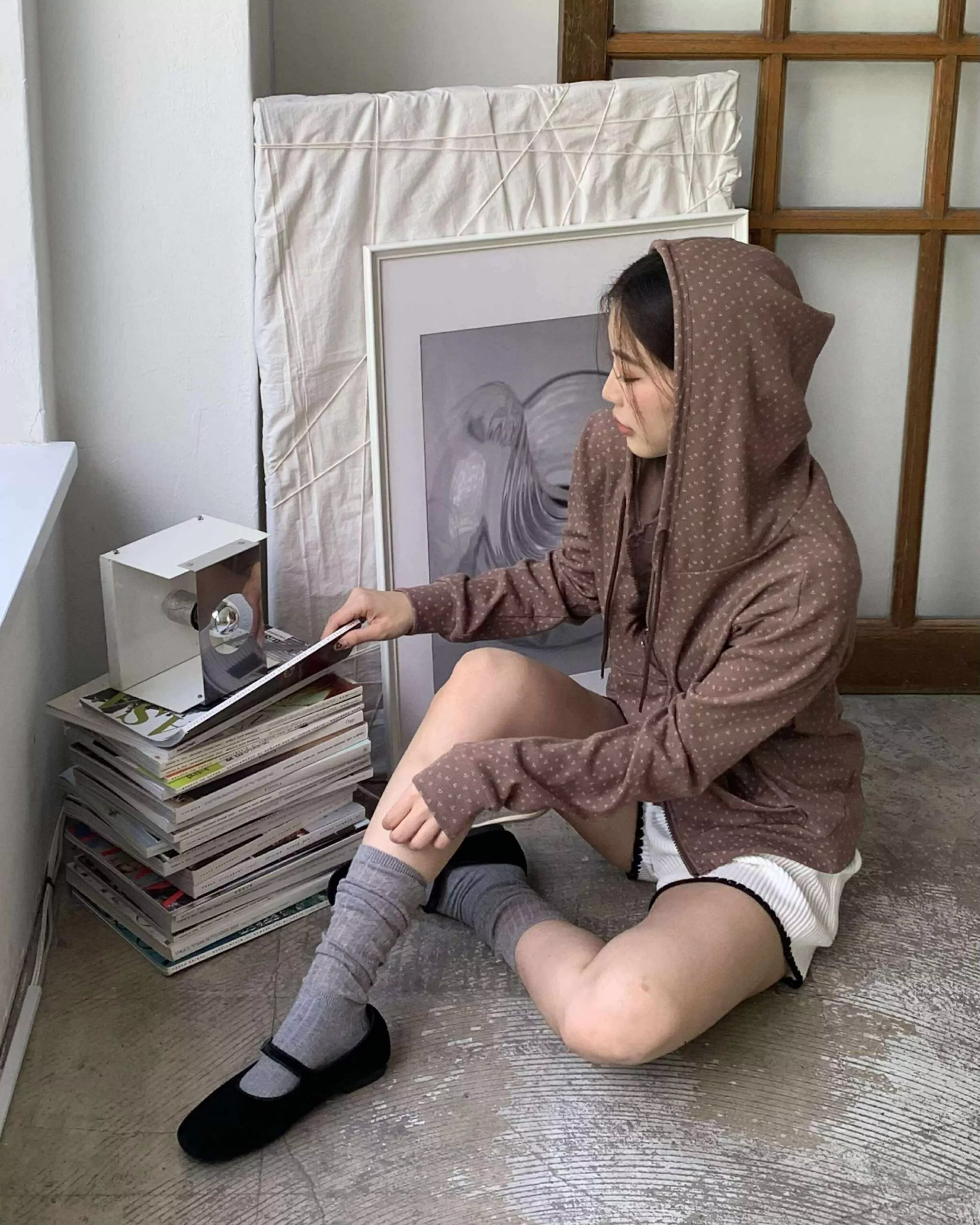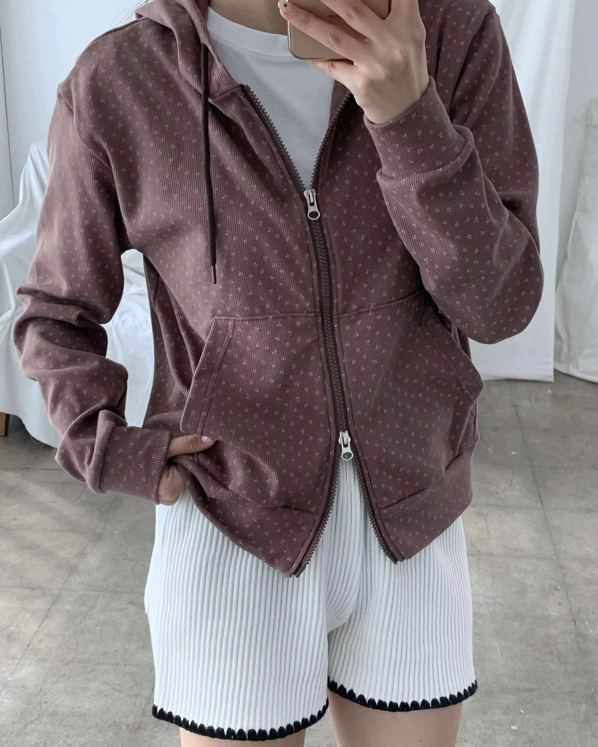 未知的首爾花朵連帽外套 (咖)