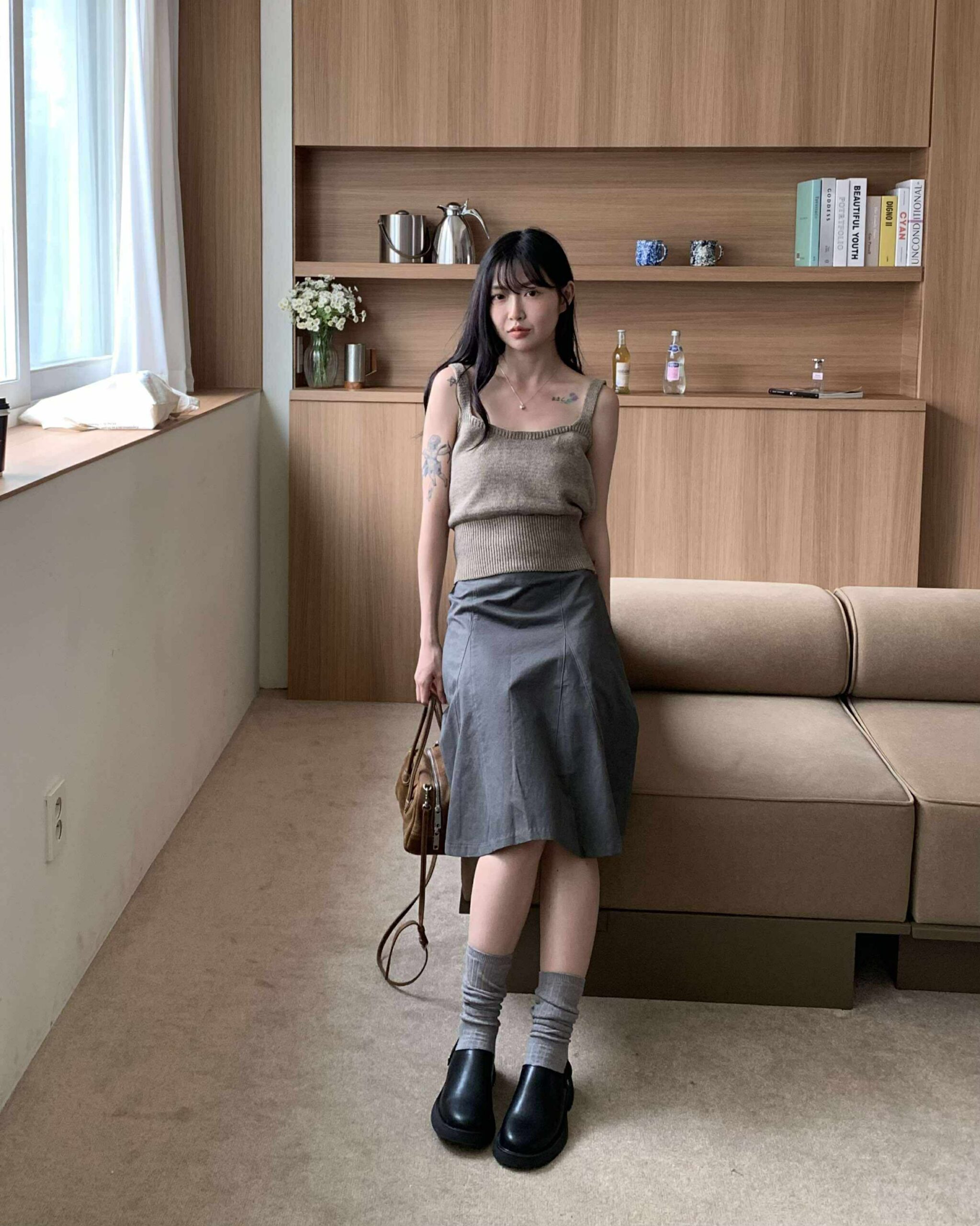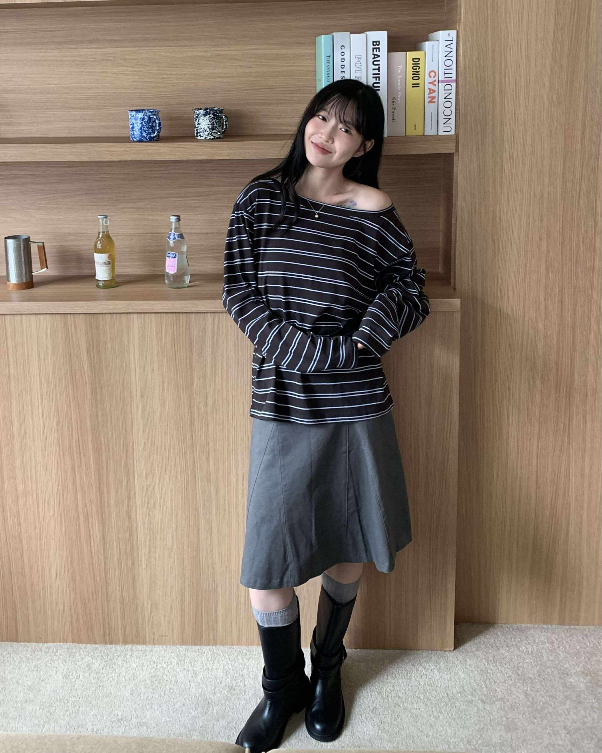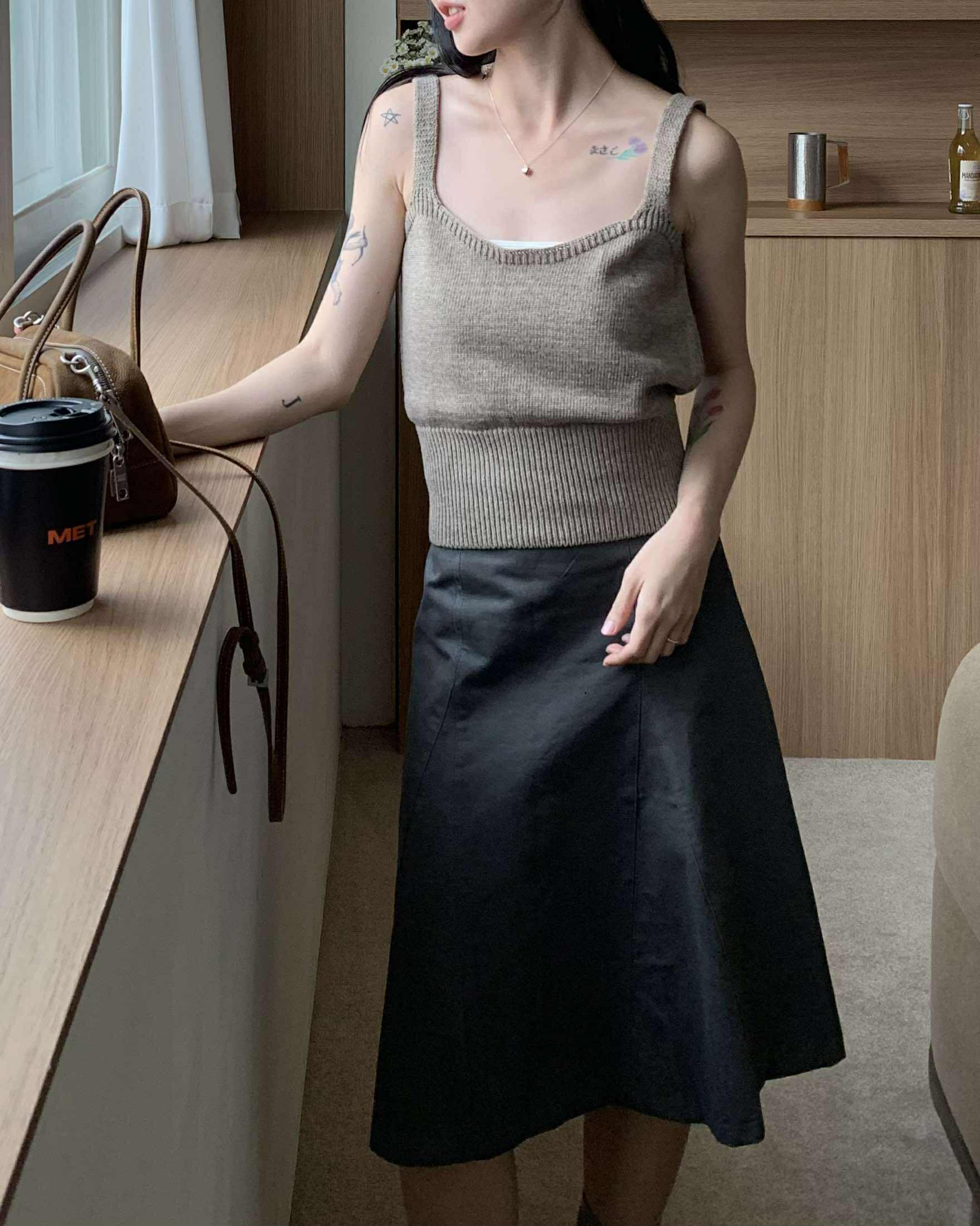 部落客時髦及膝裙 (深灰)