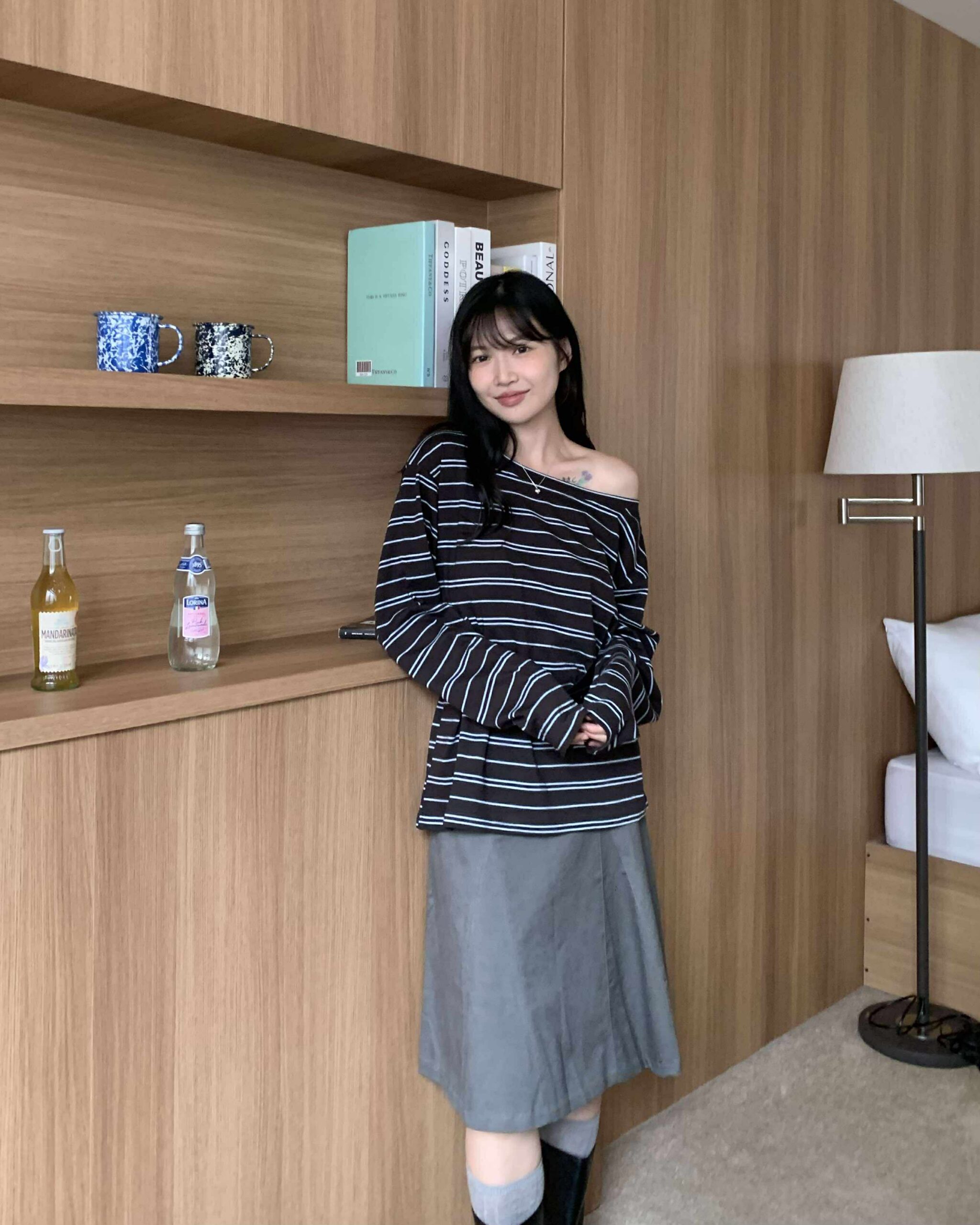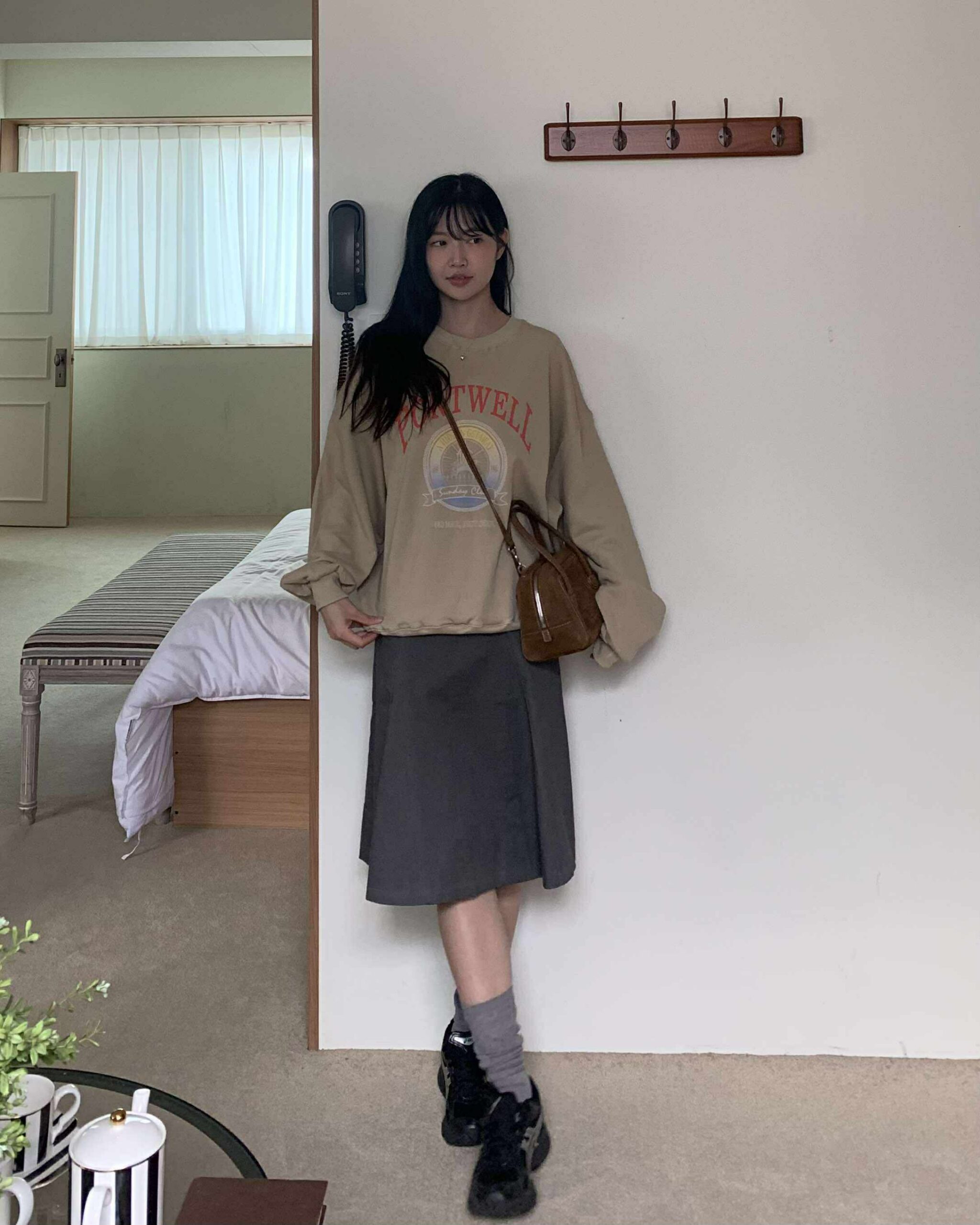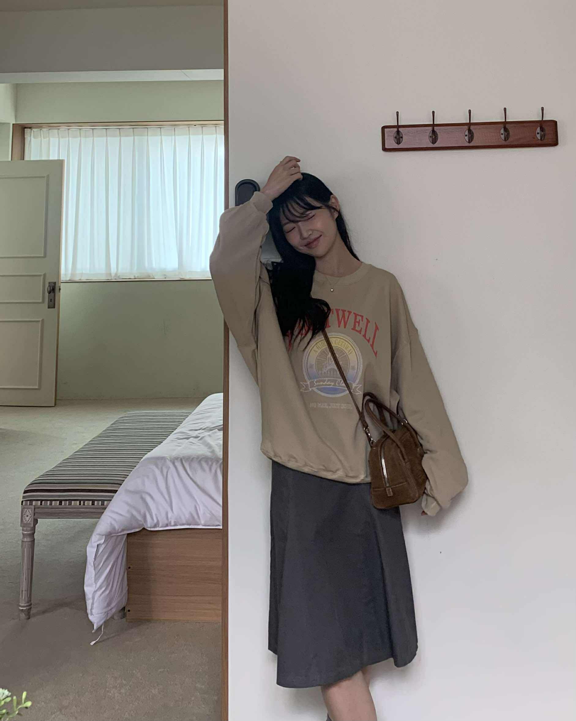 部落客時髦及膝裙 (深灰)