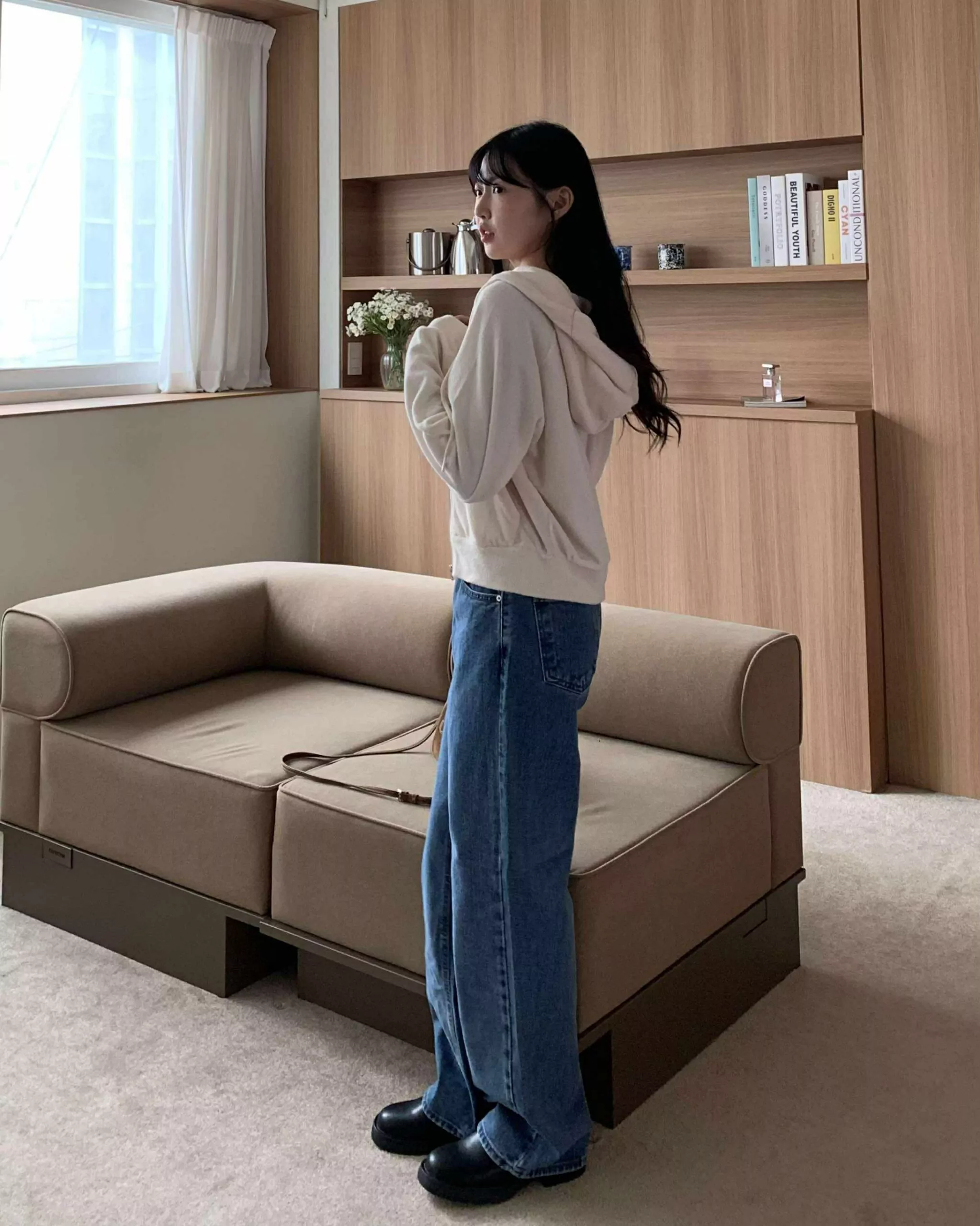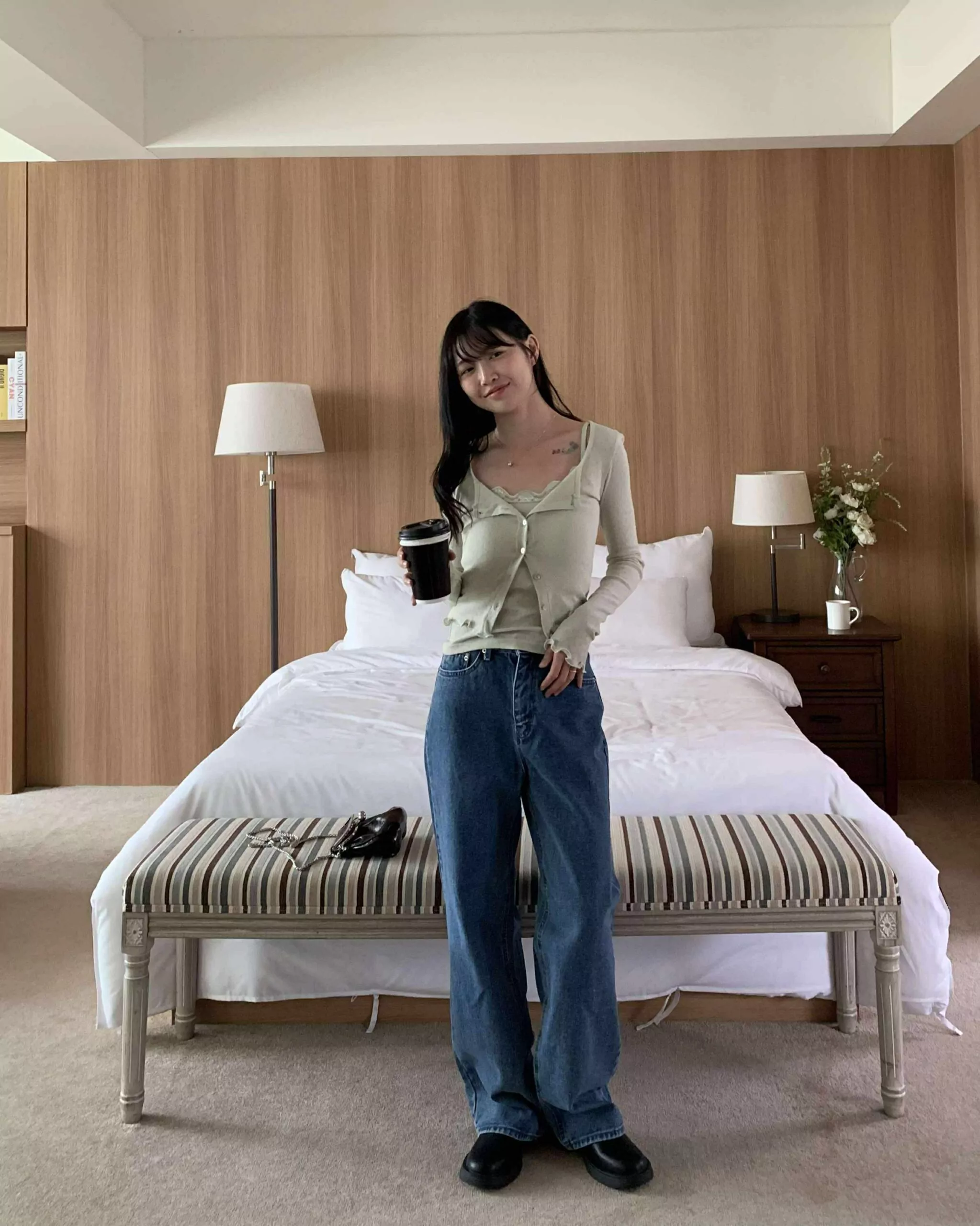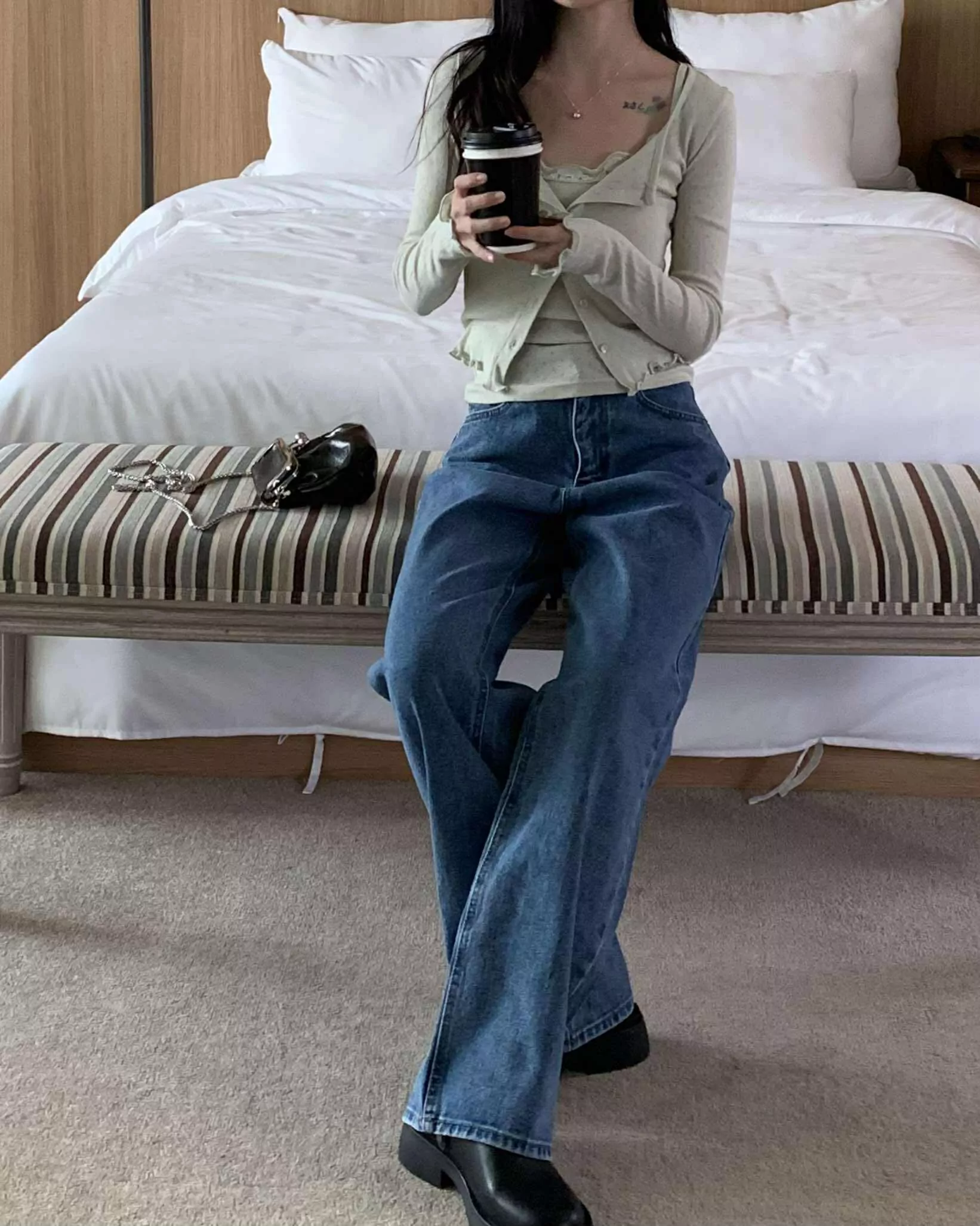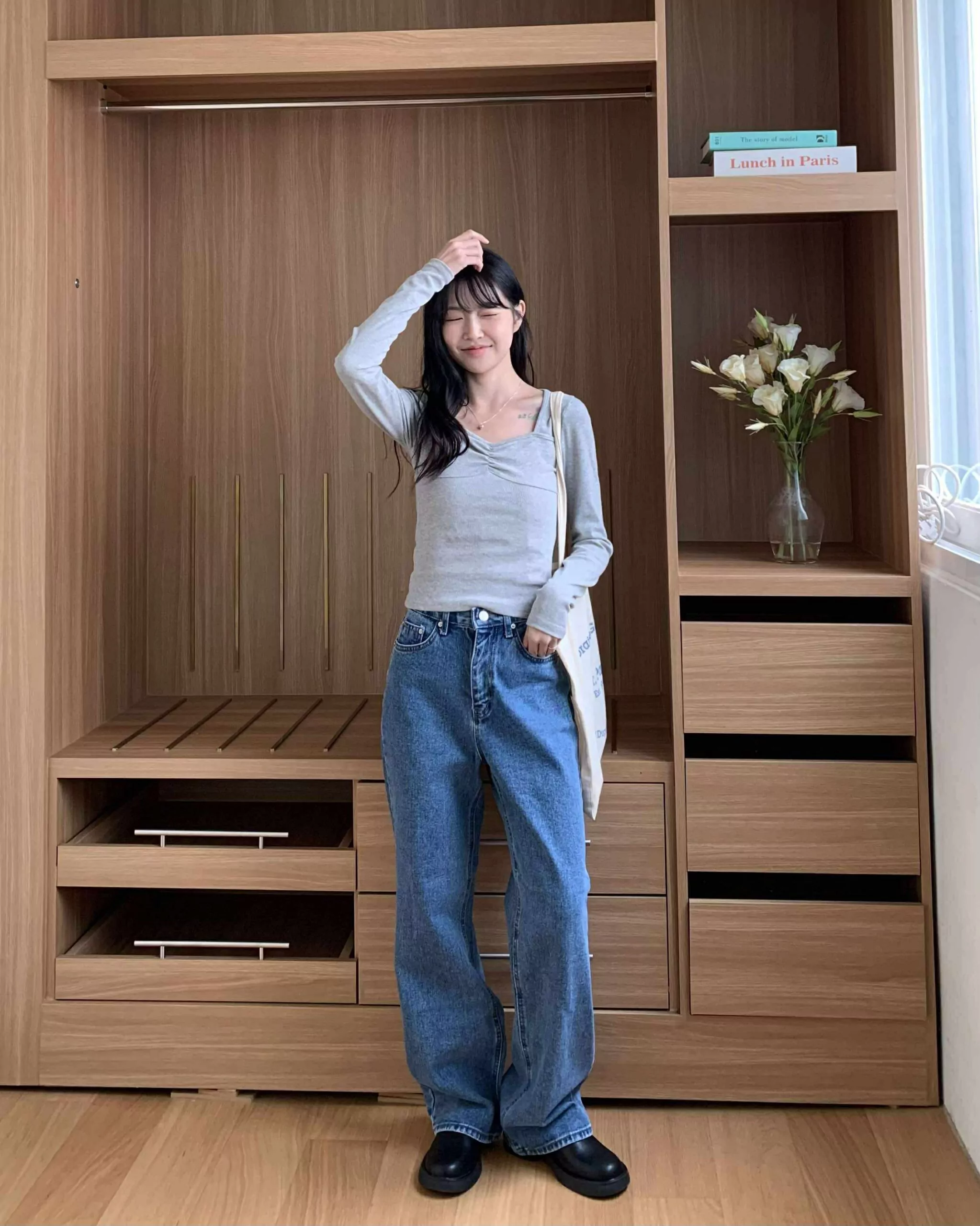 一入秋選擇了最基本的原色款直筒丹寧褲