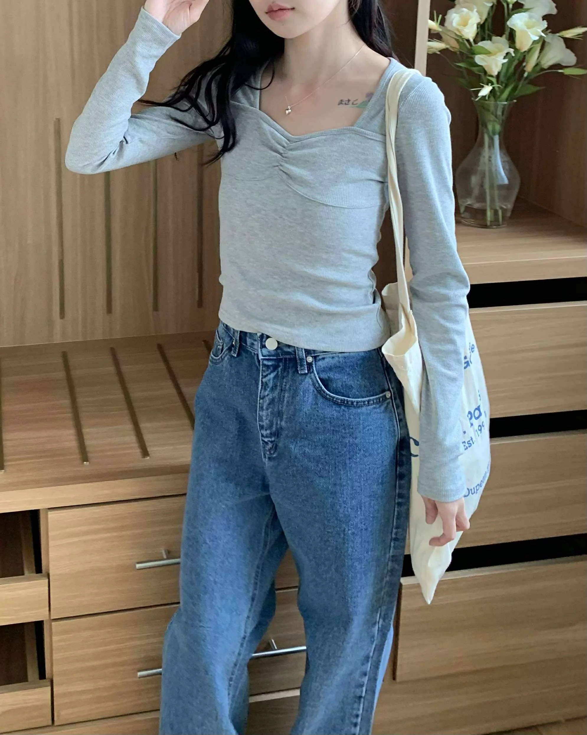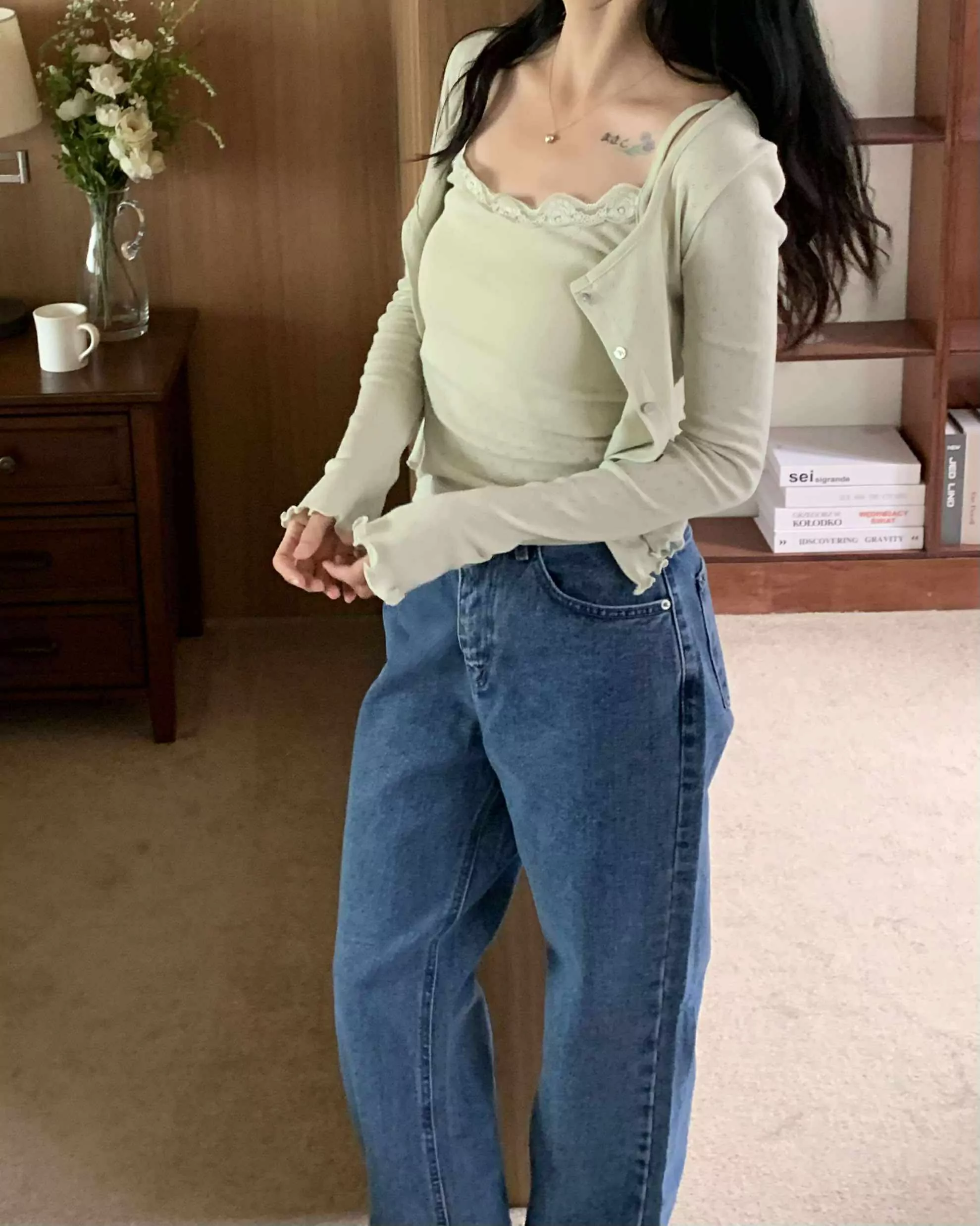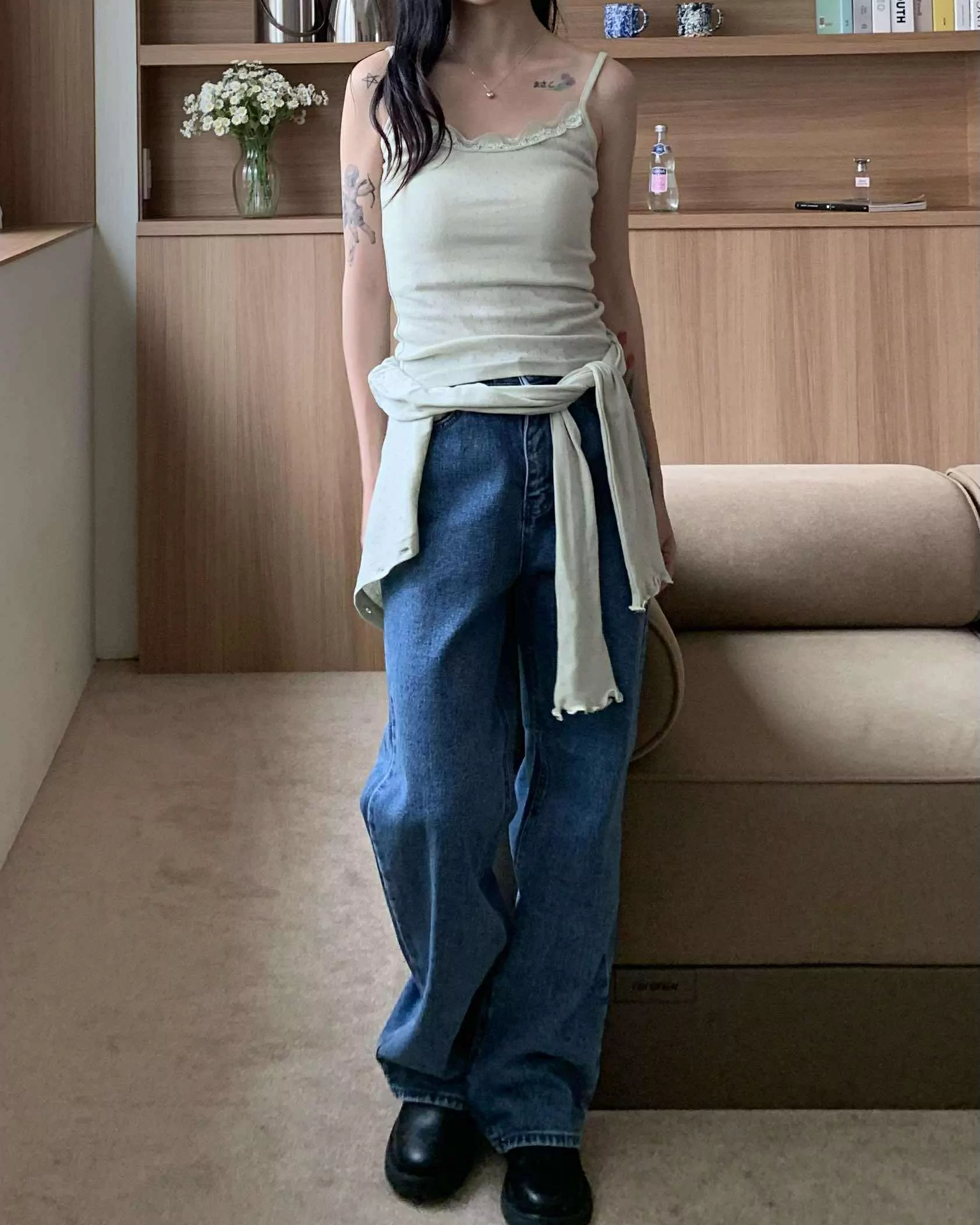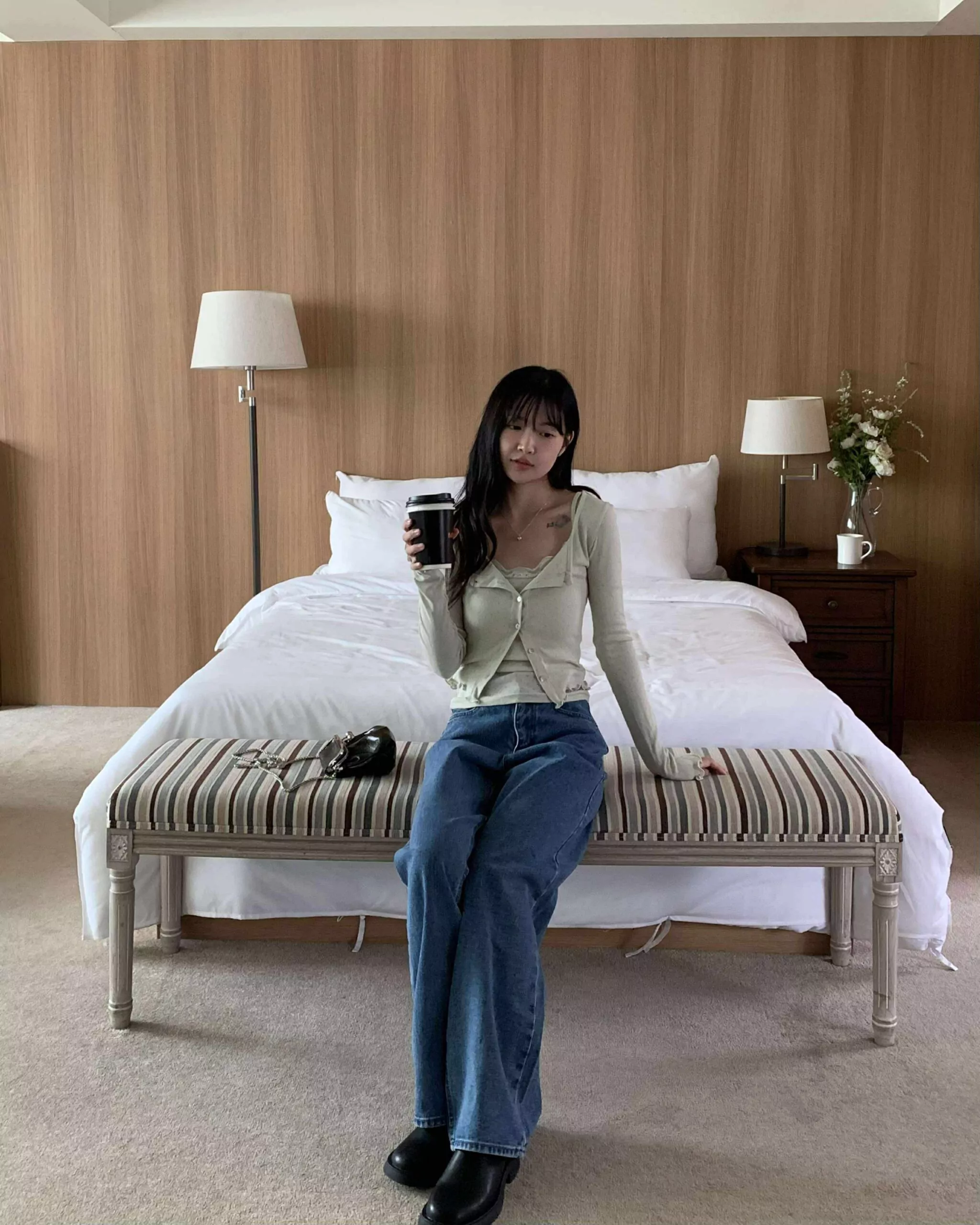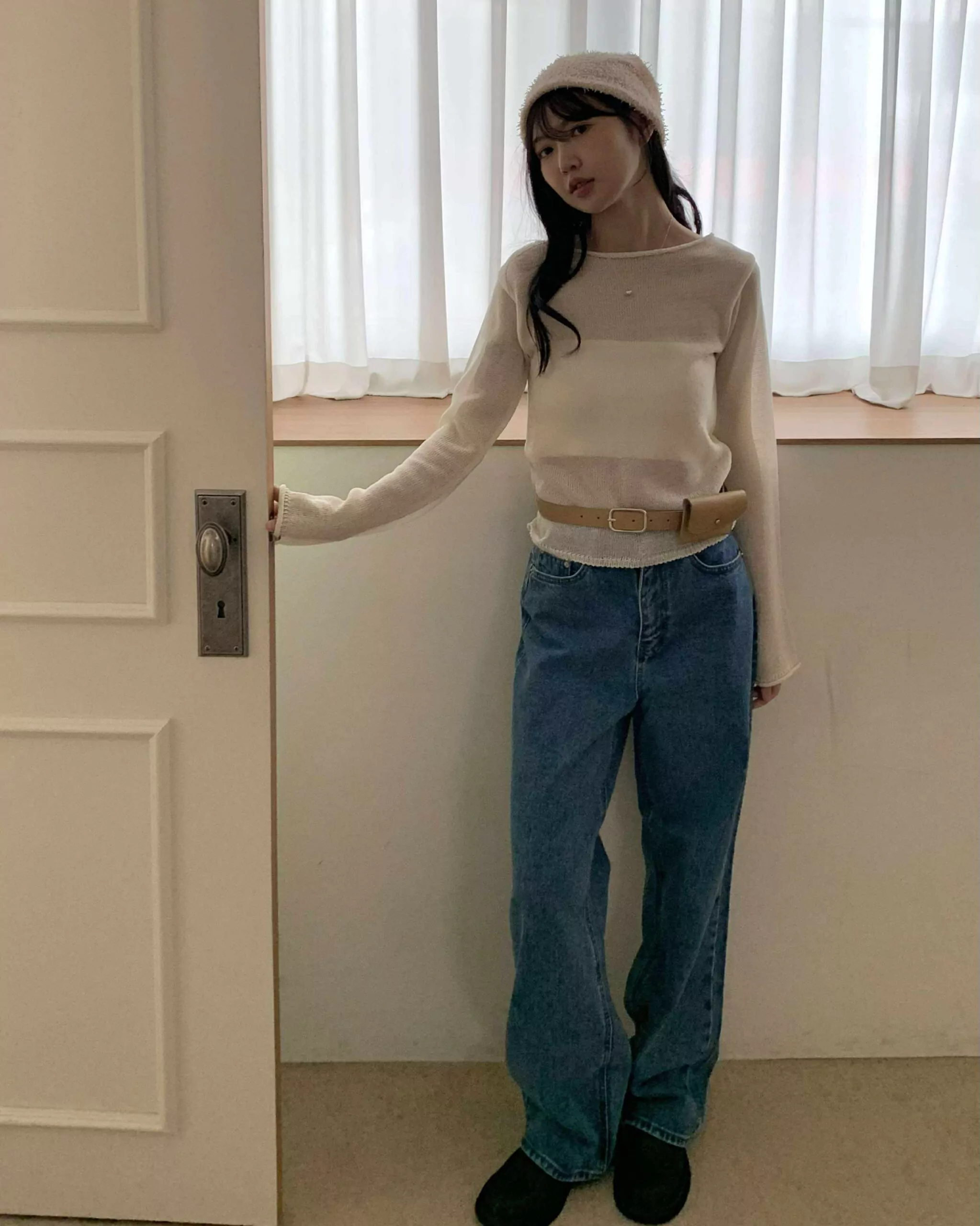 一入秋選擇了最基本的原色款直筒丹寧褲