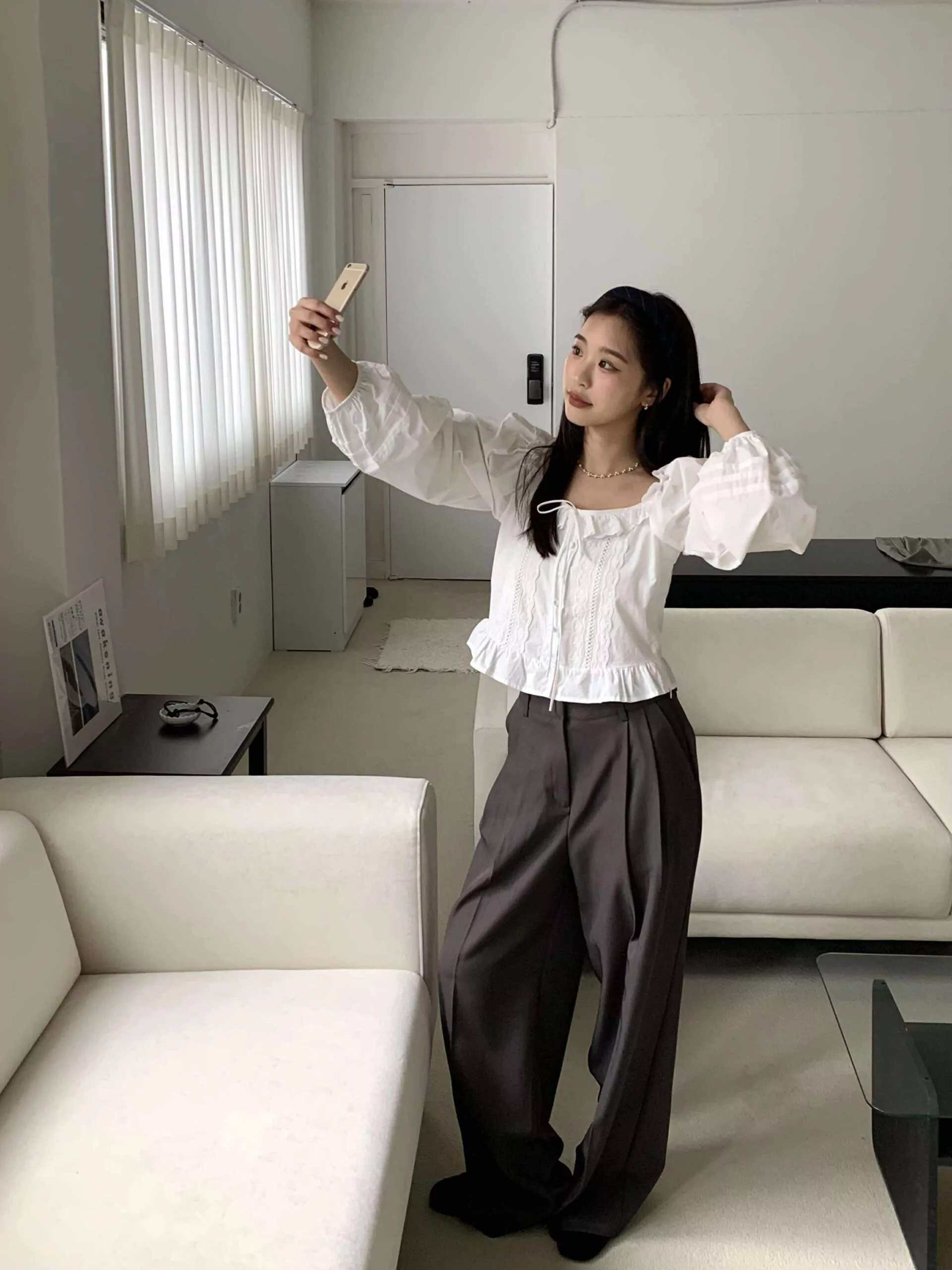 很久沒有進帶有點小宮廷風的造型上衣了!