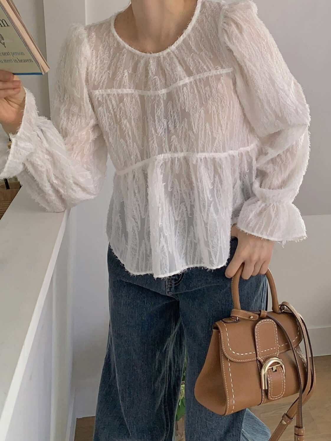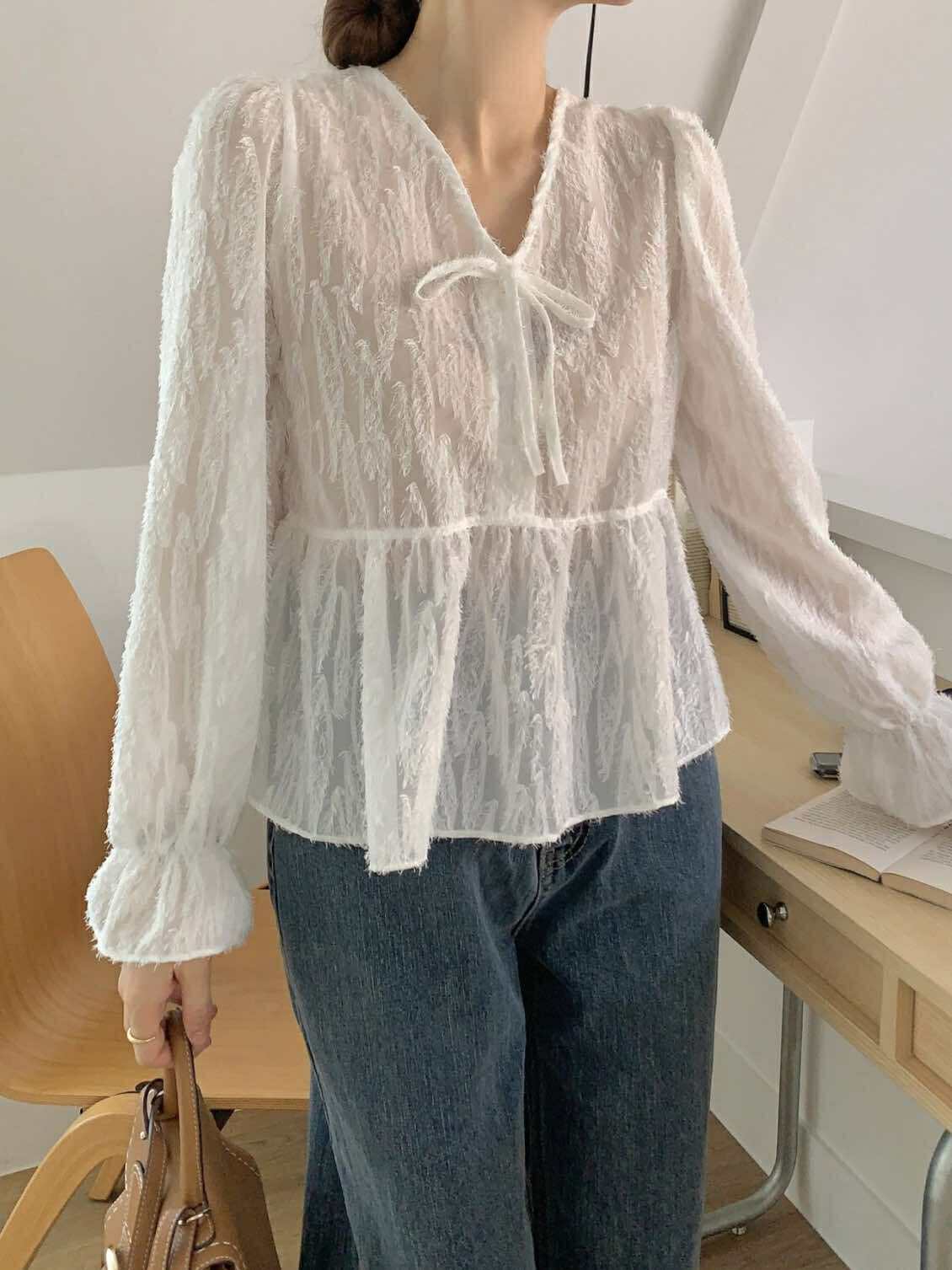美到發光!仙女綁帶造型上衣 (白)