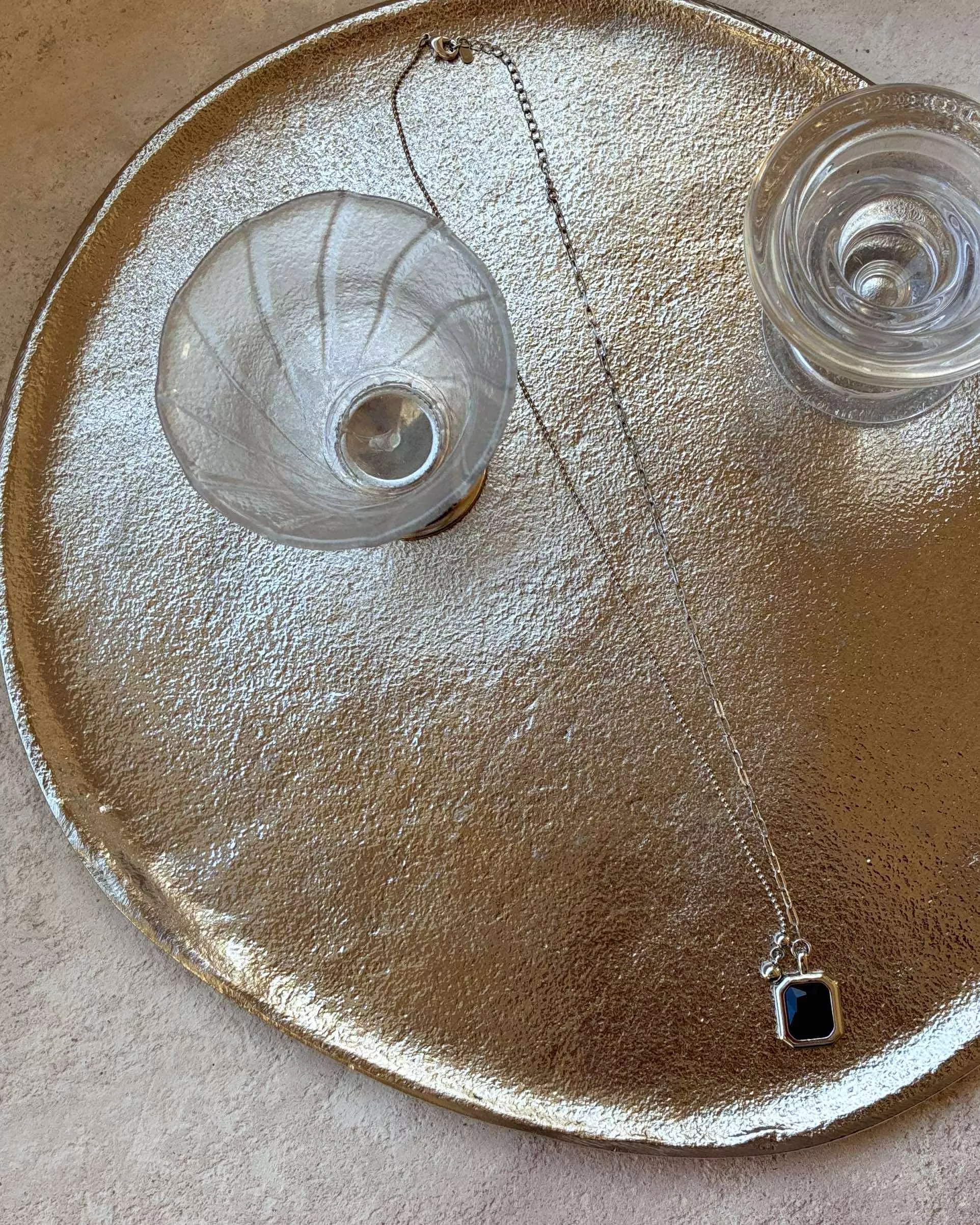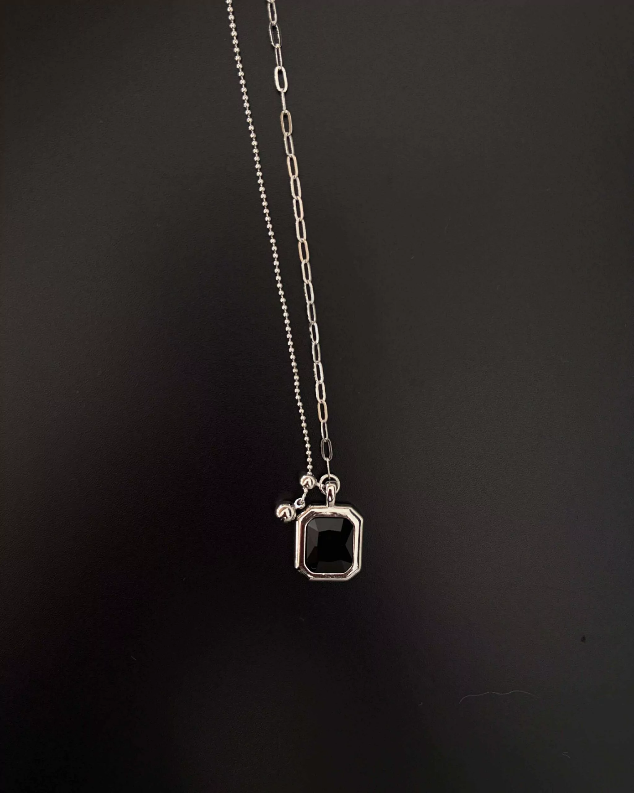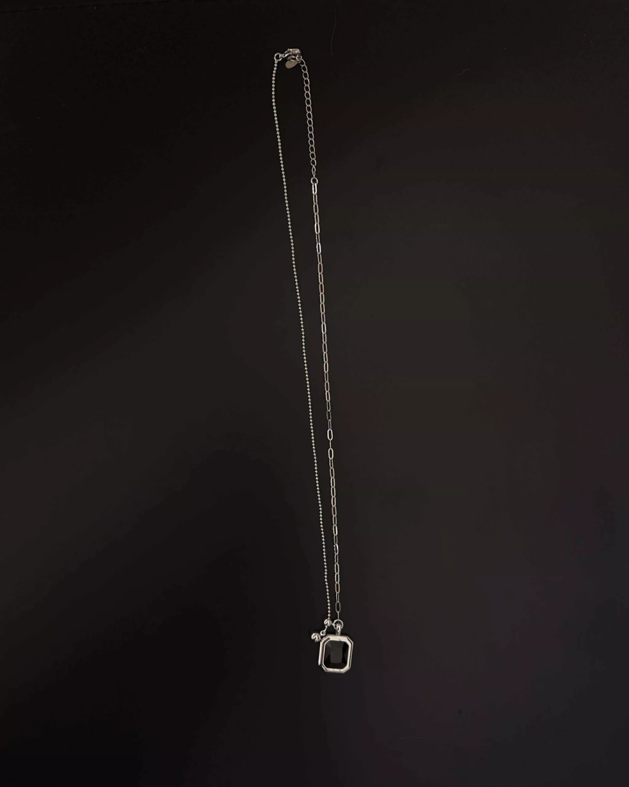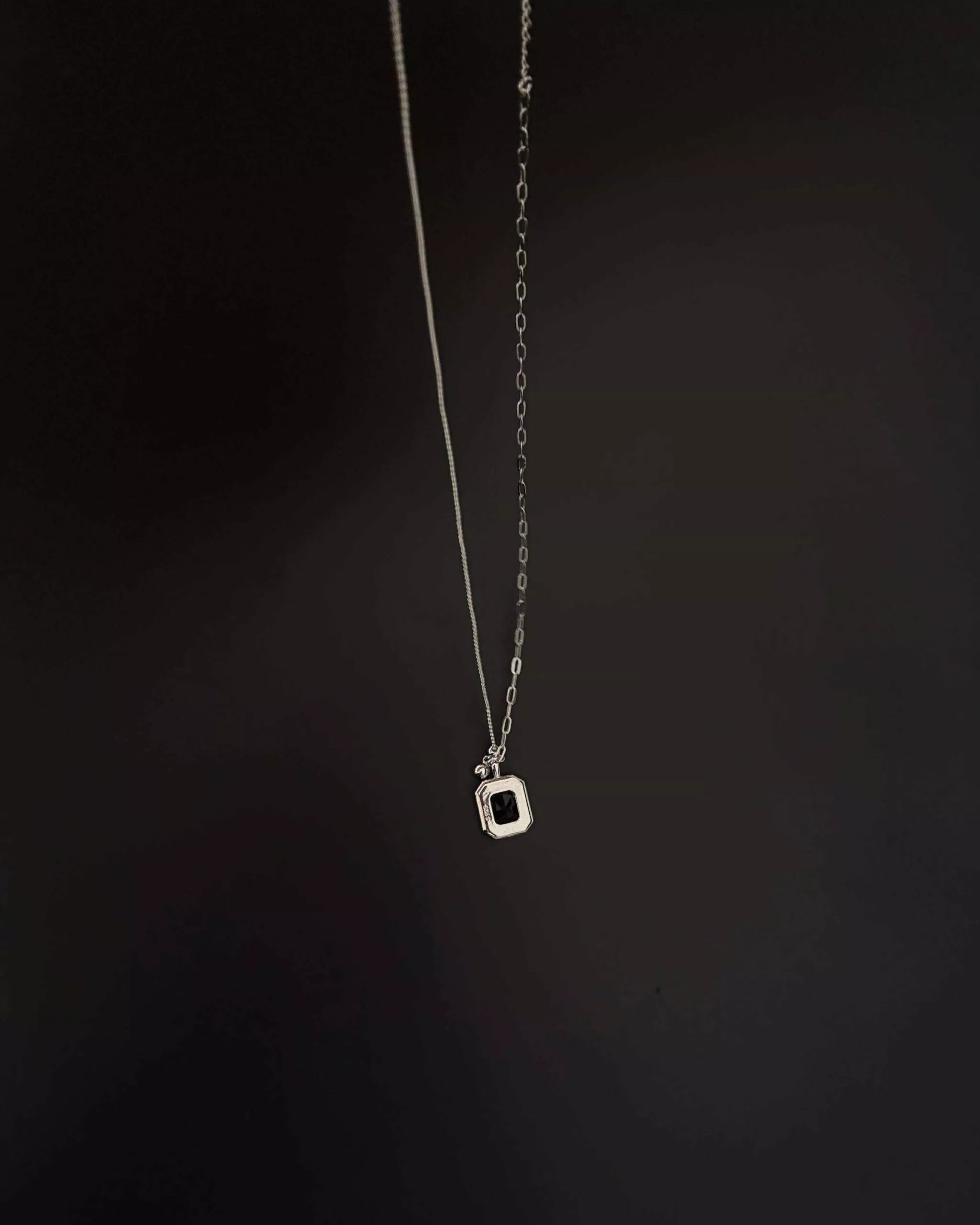 方形銀框搭配黑石顏色對比 讓簡約穿搭多一個重點