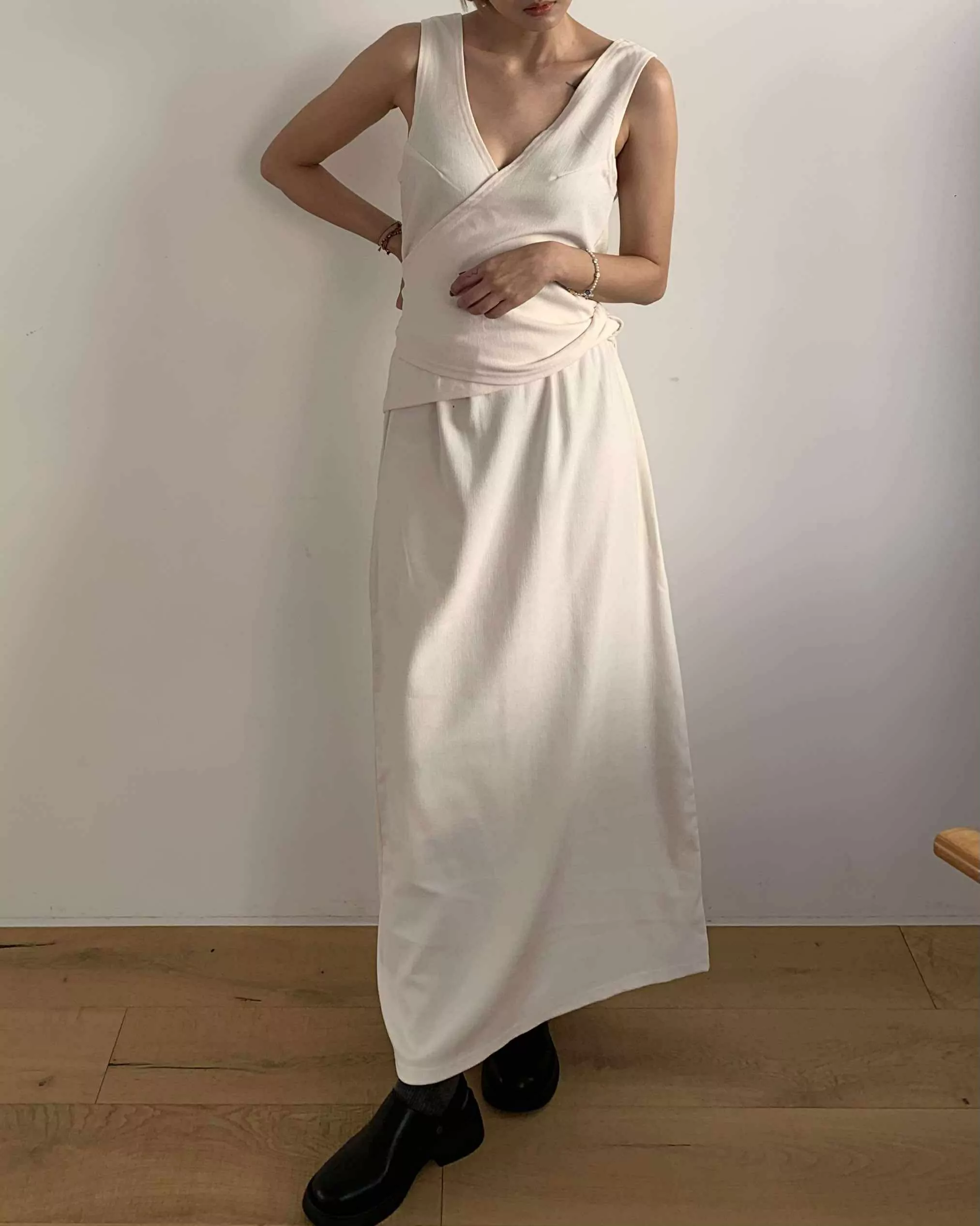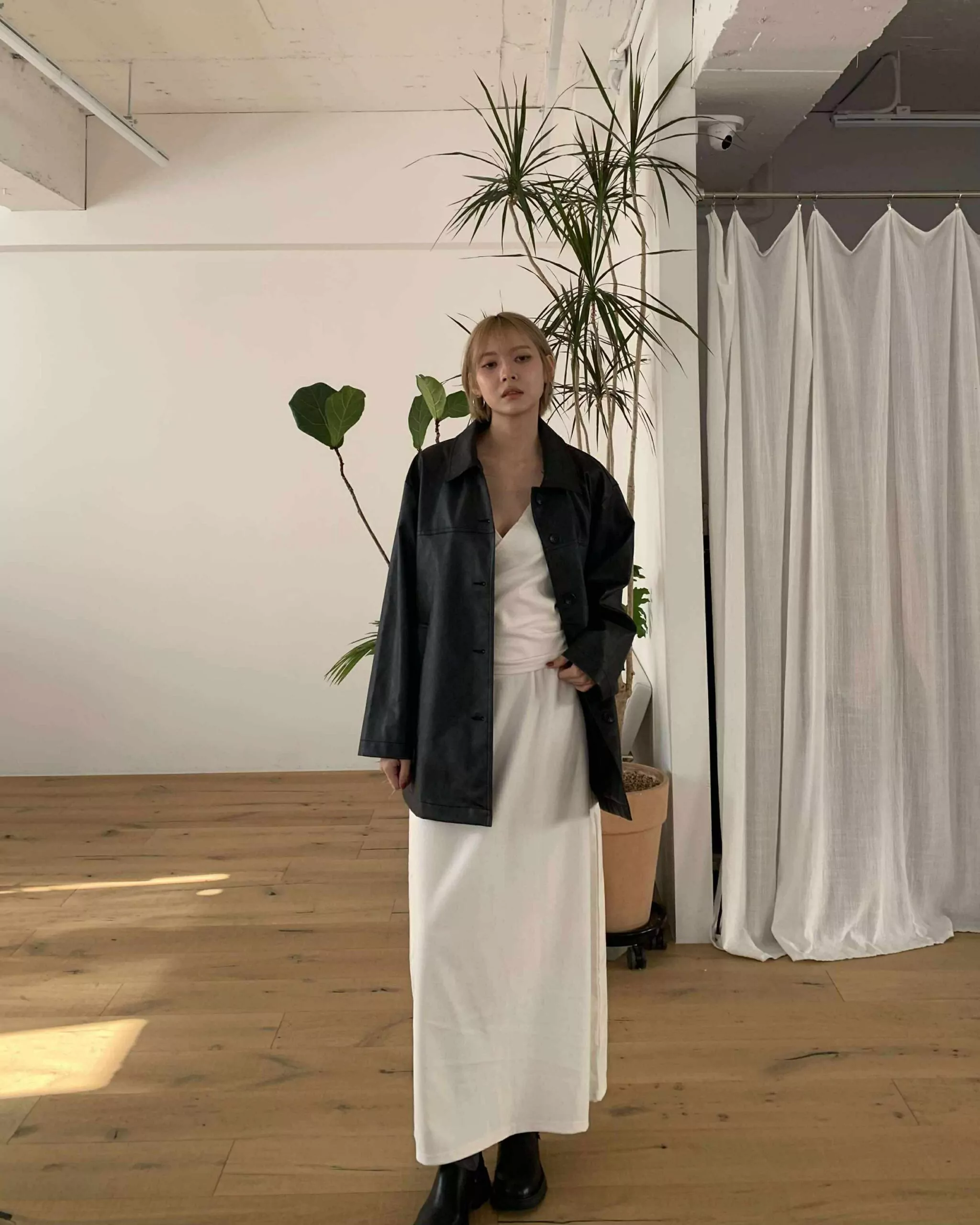白色整套穿上瞬間變高級 可以直接去清潭洞享用燭光晚餐