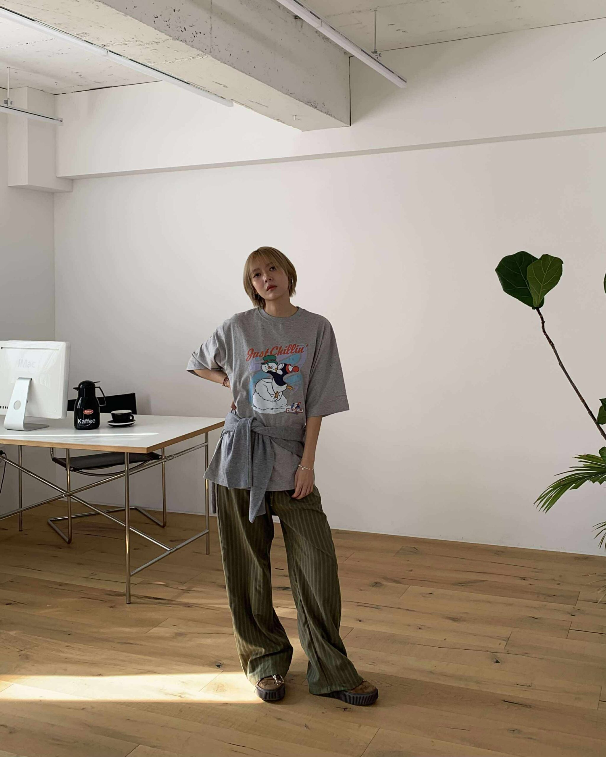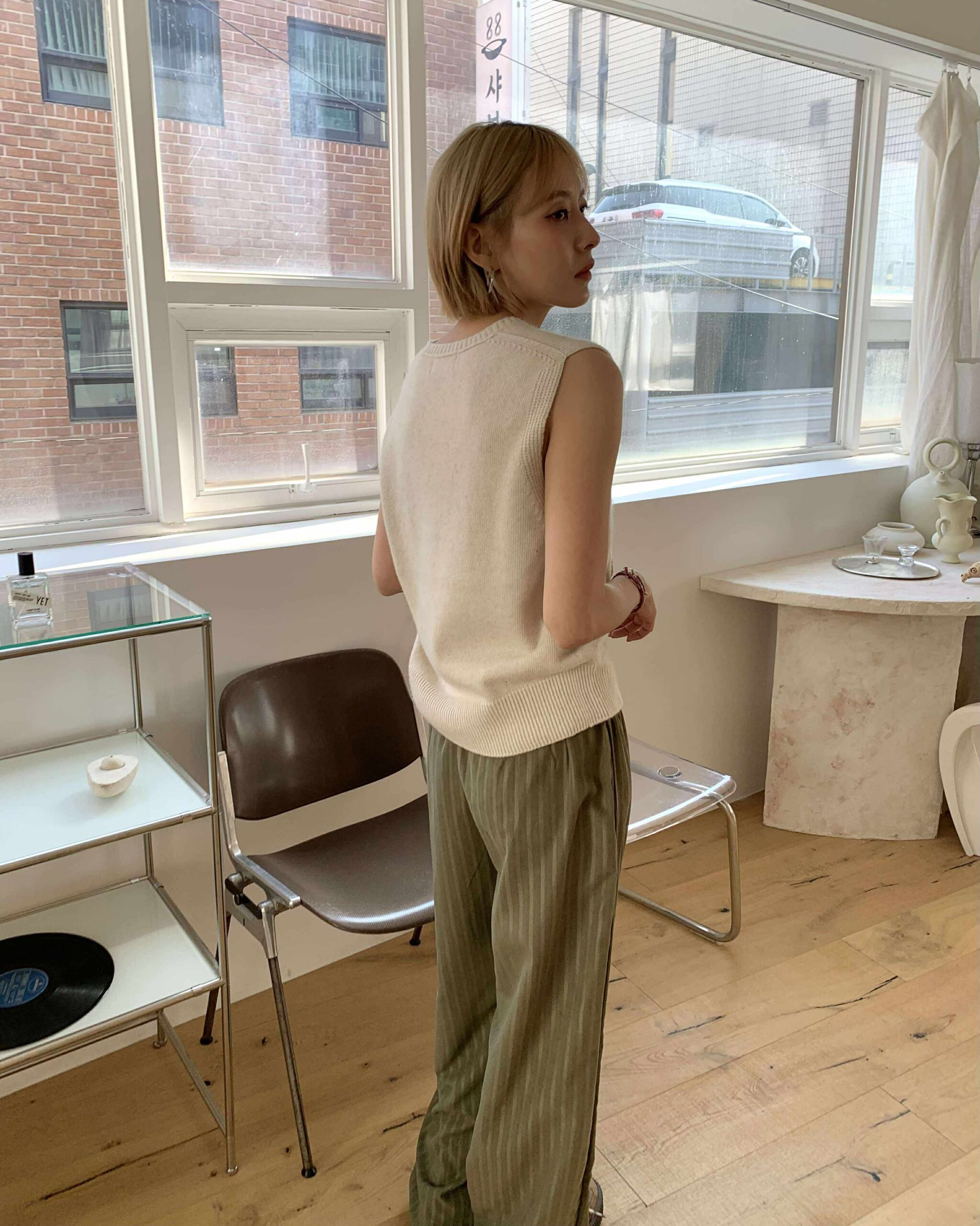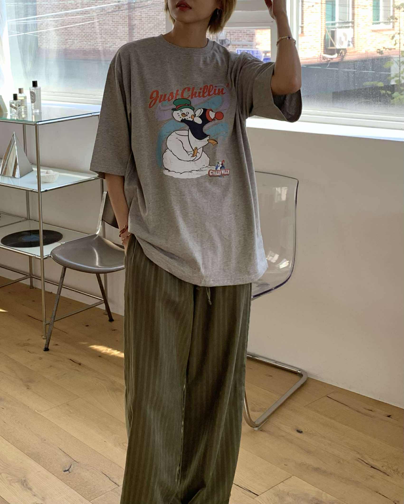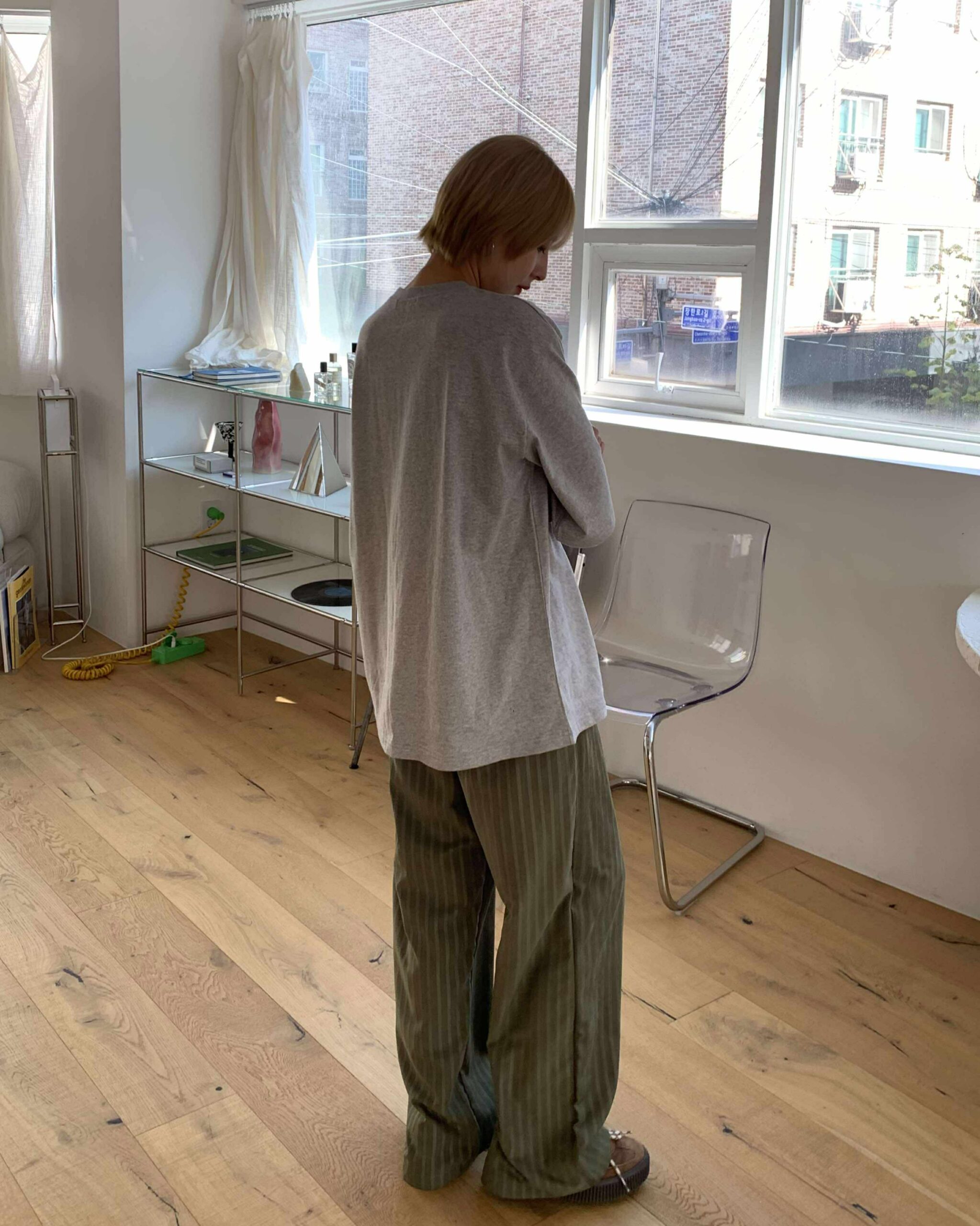 慵懶條紋長褲 (綠)