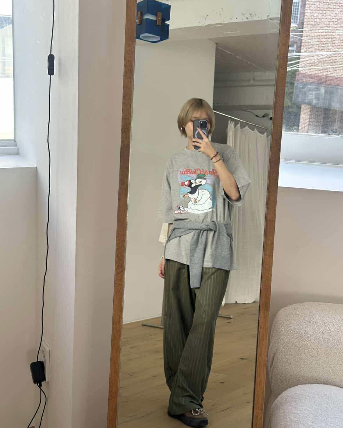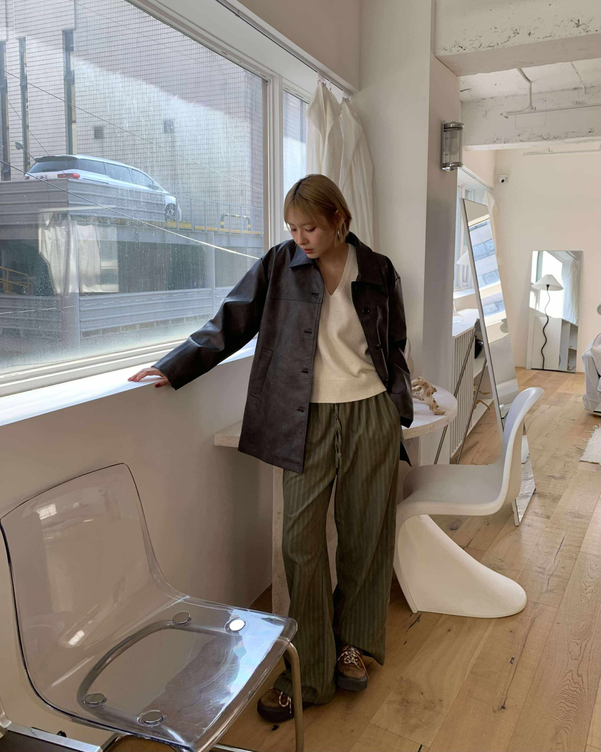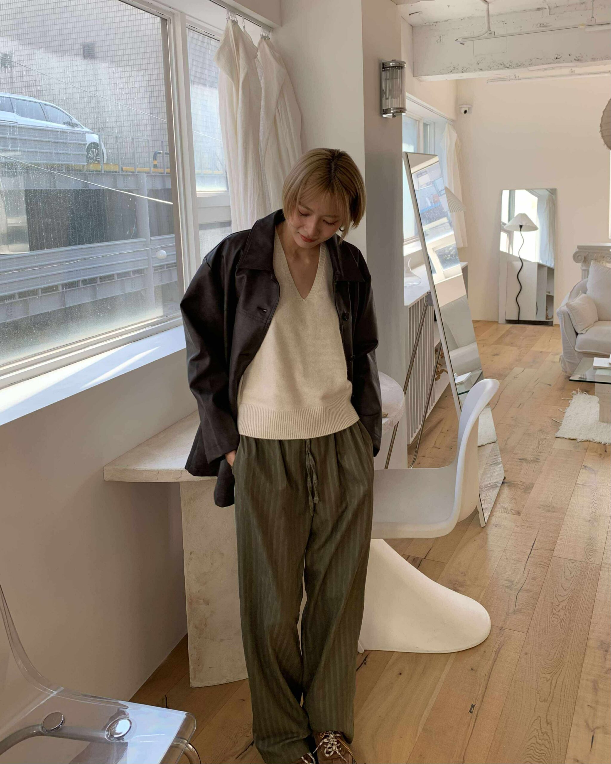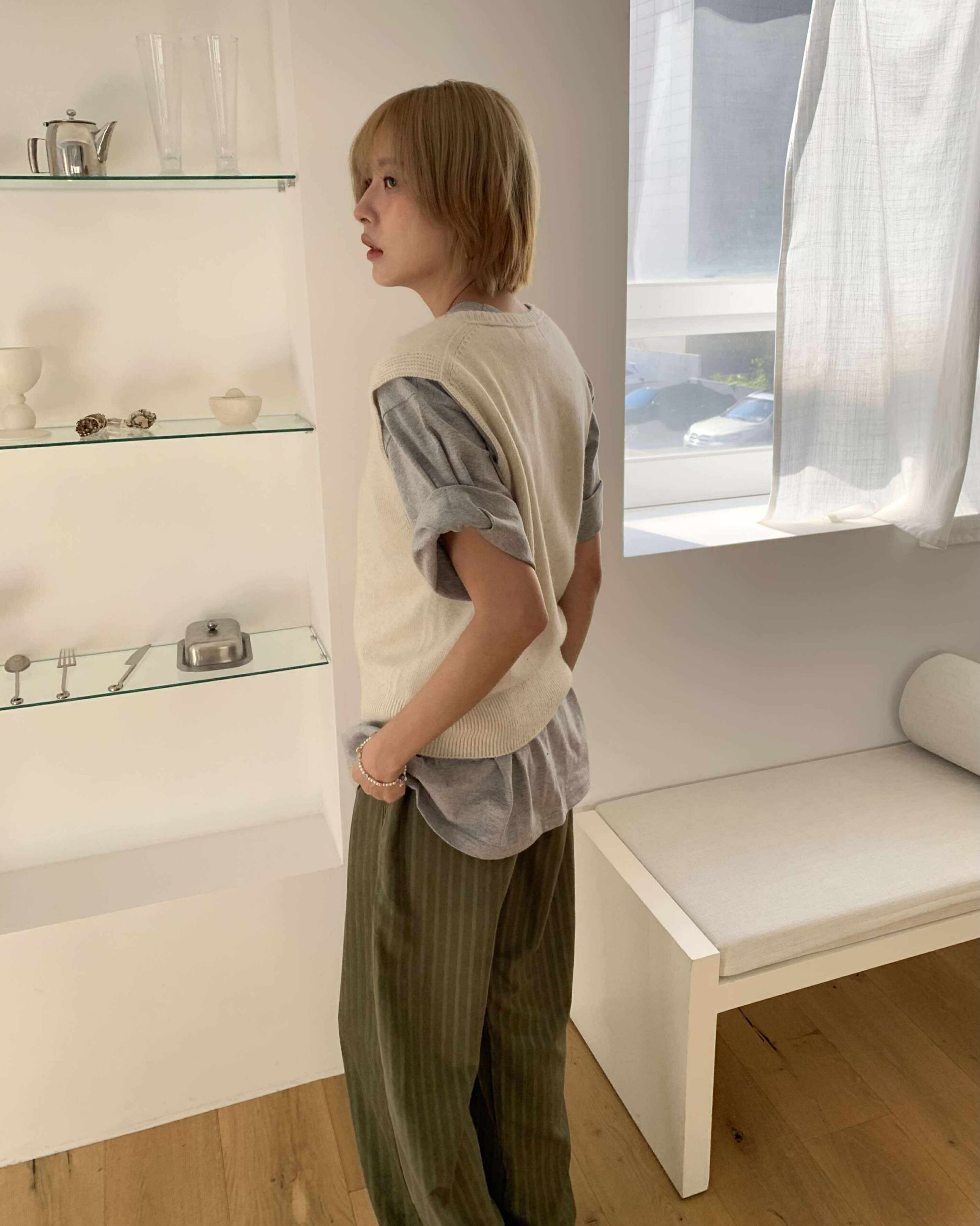 慵懶條紋長褲 (綠)