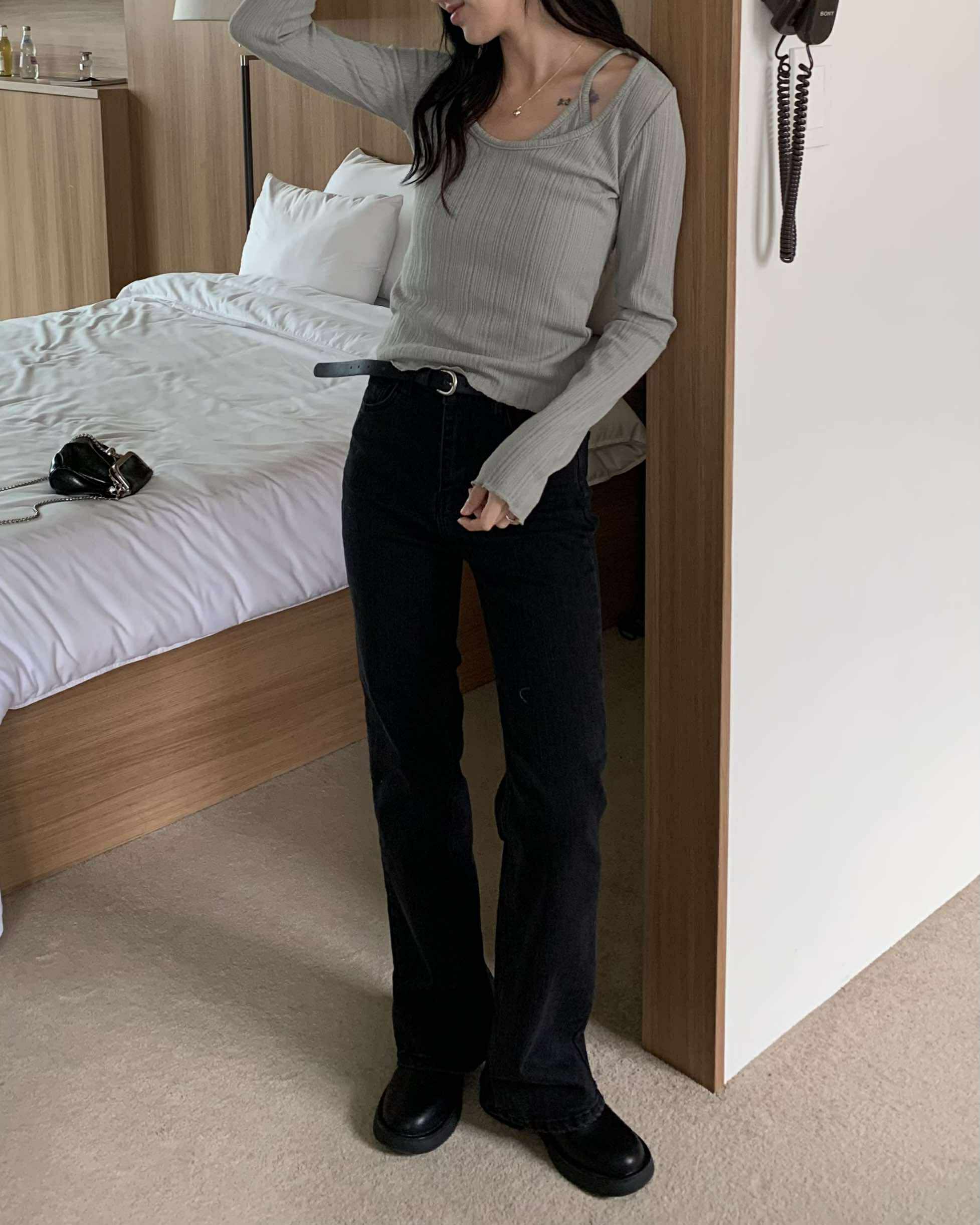 誰穿誰最瘦!彈性黑色丹寧喇叭褲